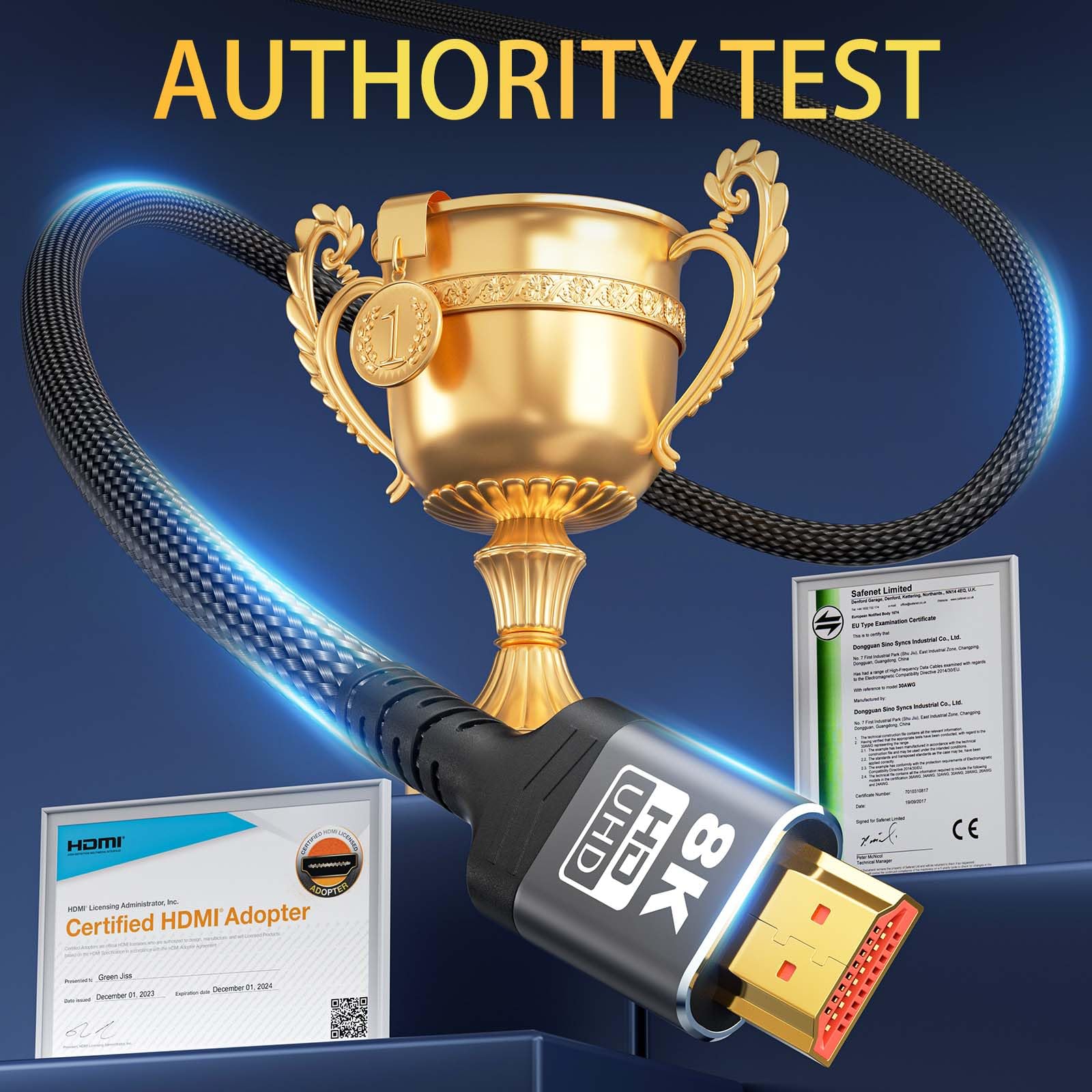 • πŸš€[Strict Quality Control] Green Jiss HDMI 8K cables are manufactured with strict quality control standards. Every cable and even every part has been put through rigorous testing. We've combined every flawless part into a perfect 8K HDMI cable. Then pass the performance tests in the laboratory and present them to you after passing the exam.