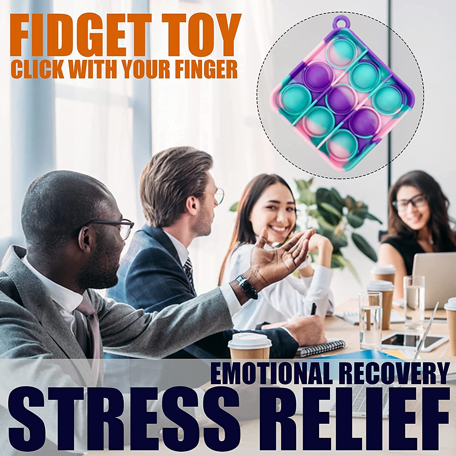 • 【Fashionable Design】: The mini pop fingertip toy pack contains 12 pieces of toys in different colors. New color square, round, heart-shaped, popular keychain fashion and cute. The hand-sized pop and hanging hole design is more convenient for storage, suitable for students, office workers and daily entertainment!