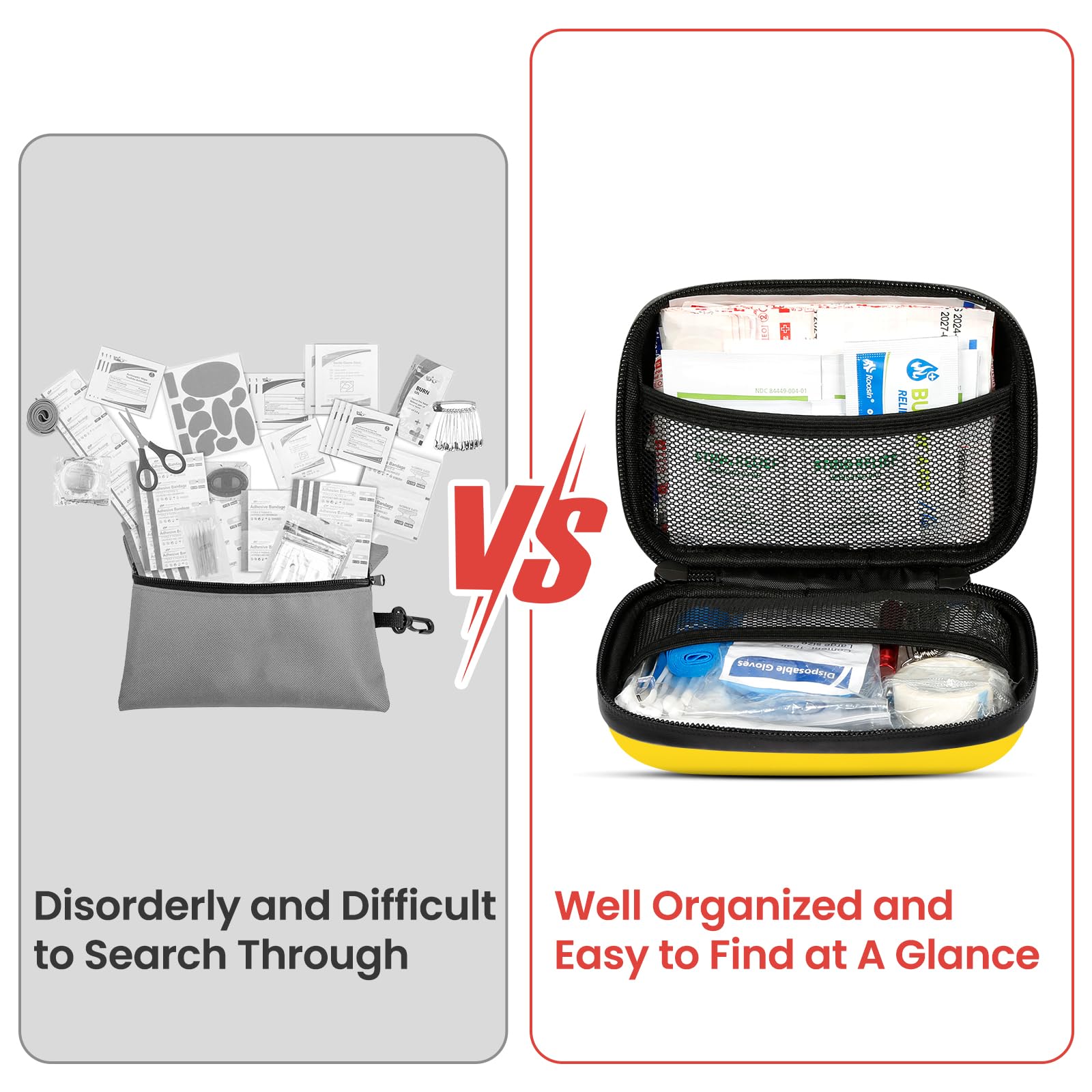 • Waterproof and Durable First Aid Kit: The travel first aid kit is made of high-quality waterproof EVA, and the shell is sturdy and durable, making it an ideal equipment for extreme outdoor adventures. In addition, it is also a thoughtful and practical gift choice. Whether it is given to a friend who loves outdoor sports or someone who cares about the safety and health of his family, this first aid kit can easily convey your concern.