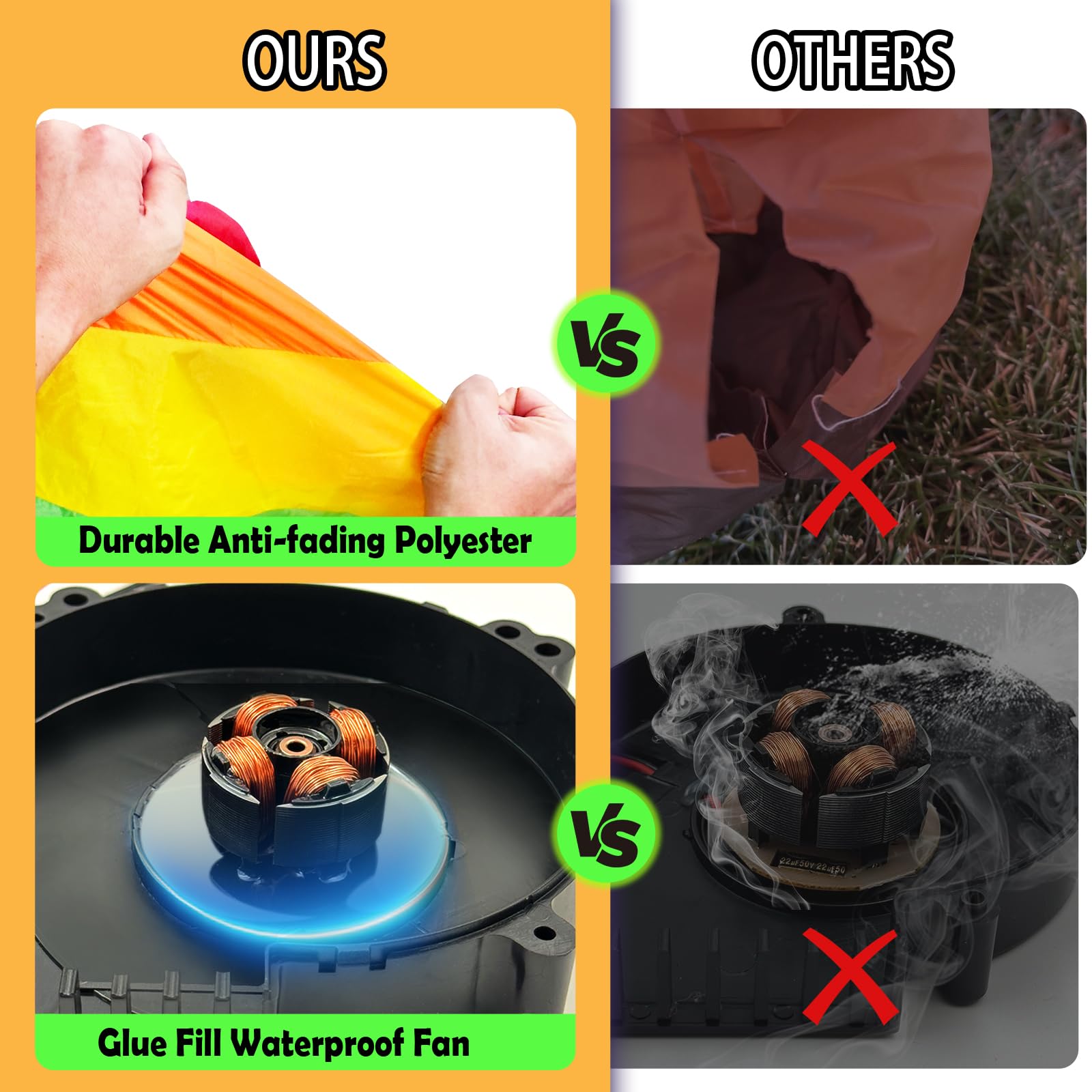 • 🎃👻【High-Quality Design】: The size of this inflatable octopus is 146*74*67 inches(L*W*H), made of waterproof polyester, can be used in the drizzle, but is not recommended for heavy rain. Also, built-in durable zipper, don’t worry about air leakage. The most popular decoration for Halloween Day and Night.