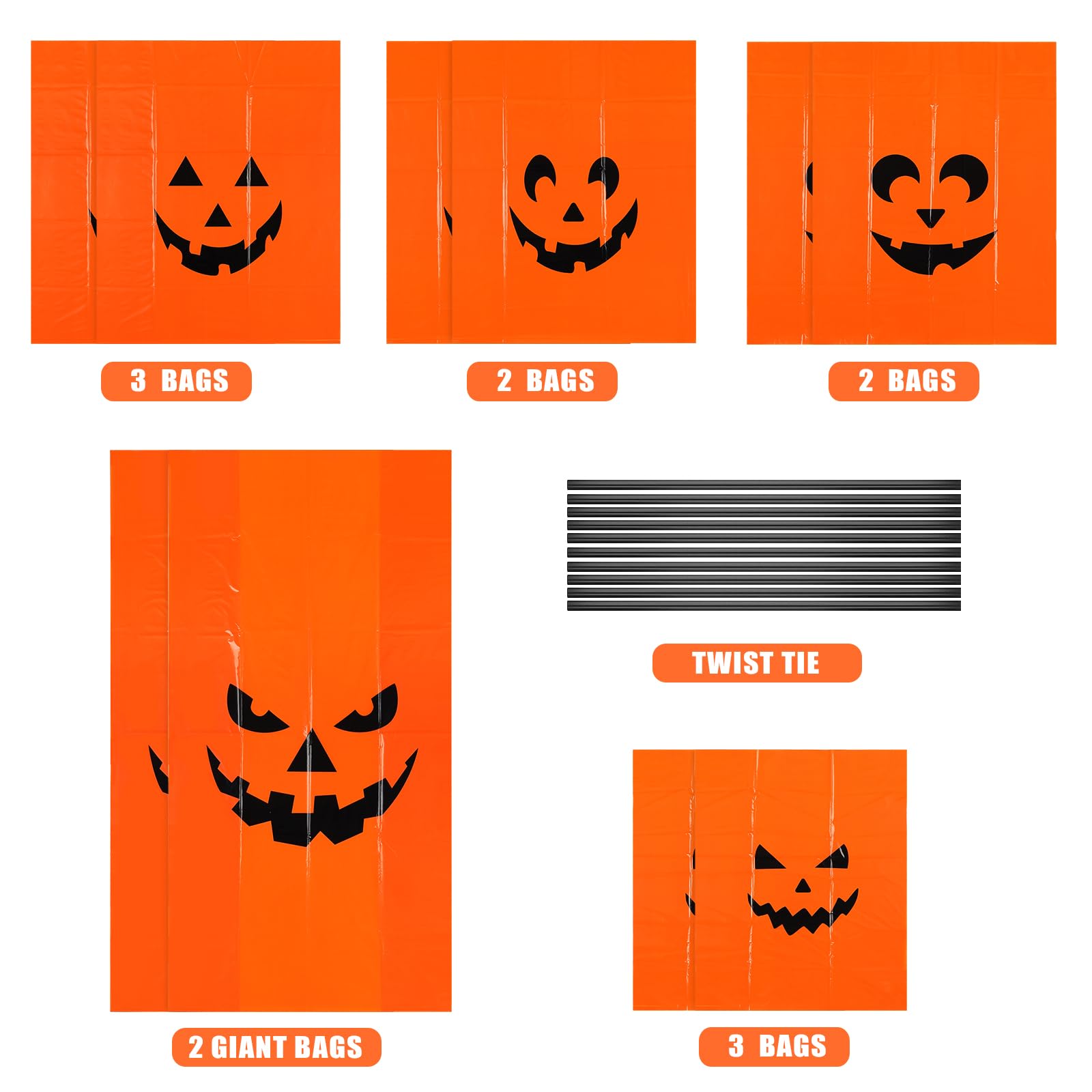 • 🎃【Super-value Halloween Pumpkin Lawn Bags】You will get 12 PCS Halloween plastic leaf bags with 5 unique designs, include 2pcs giant orange bags( 48” x 36”), 7pcs medium bags(30” x 24”), 3pcs small bags(22.5” x 18”). With printed different cut Halloween theme patterns, these Halloween lawn bags are ideal for fall Halloween lawn, garden, back yard decorations.