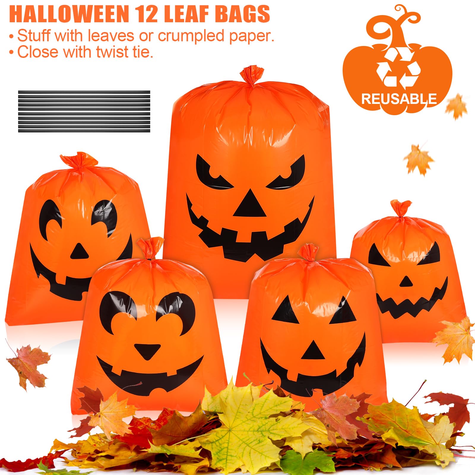 • 🎃【Durable Thicker Halloween Leaf Bags】Our Halloween pumpkin decoration bags are made of premium plastic material, non-toxic, which is very safe for you and kids to use. Thicker than others, you don’t need to worry about rips and tears, durable and reusable for next years. Perfect to decorate your lawn, front door, porch, backyard.