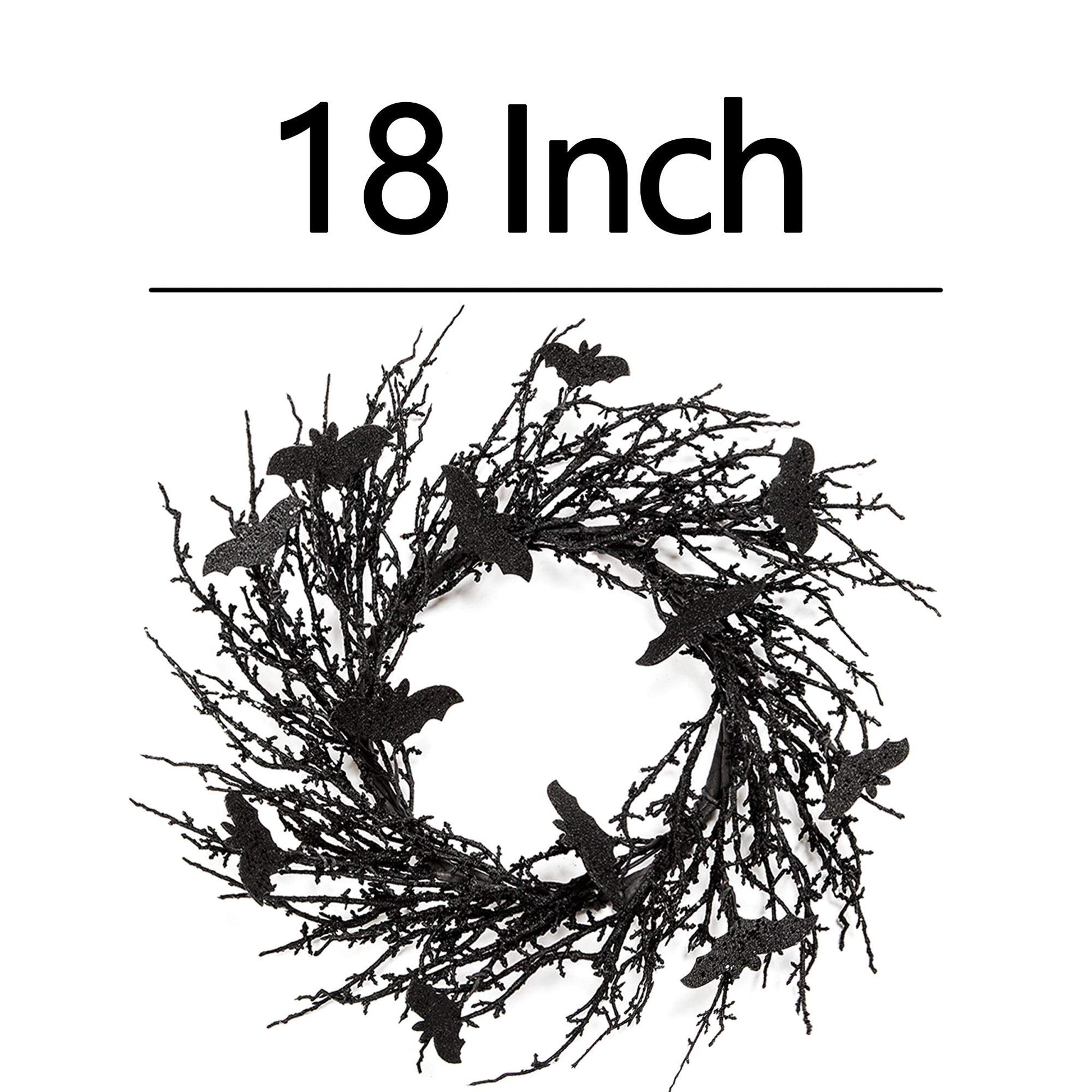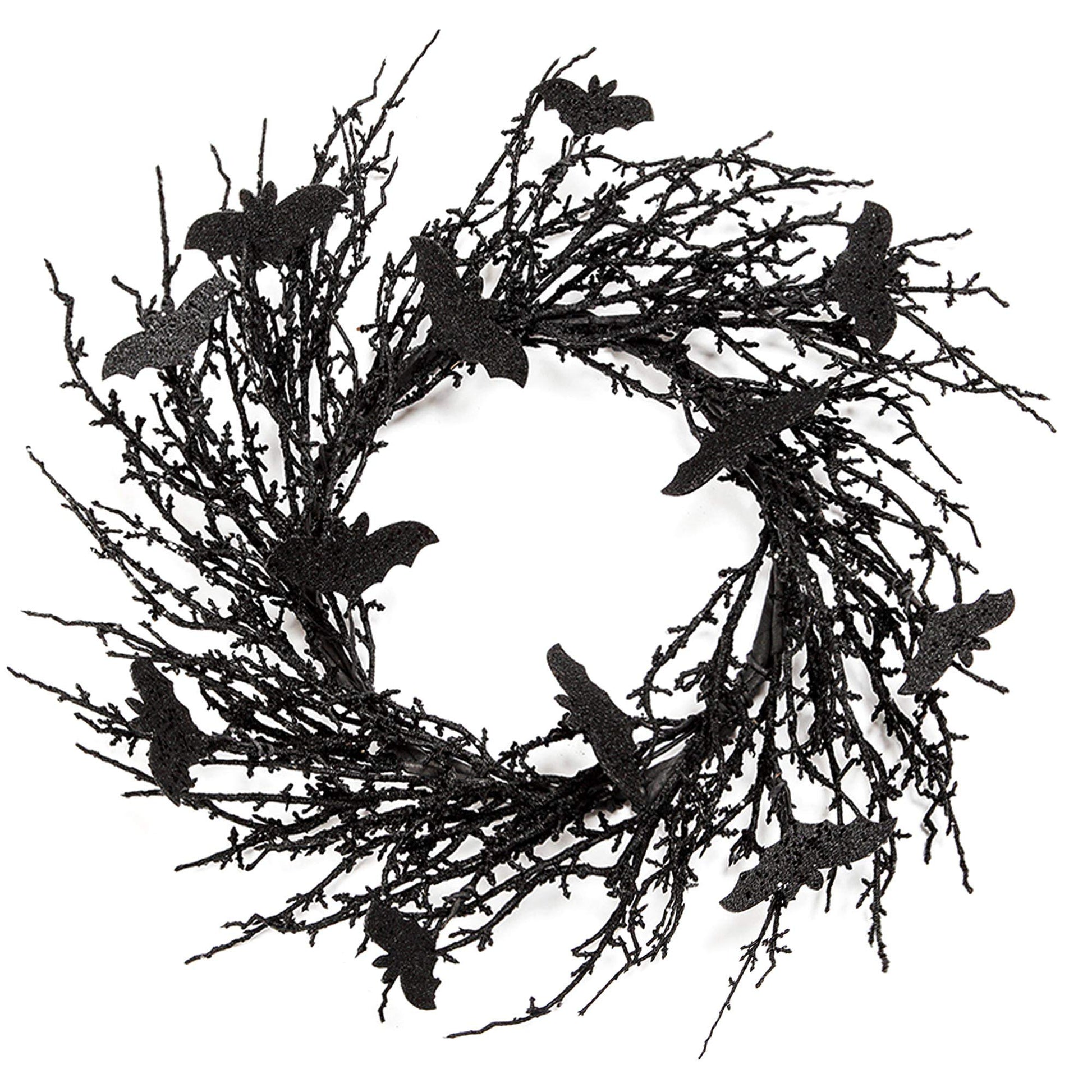 18 Inch Black Bat Wreath with Glitter Bats - Halloween Decorations