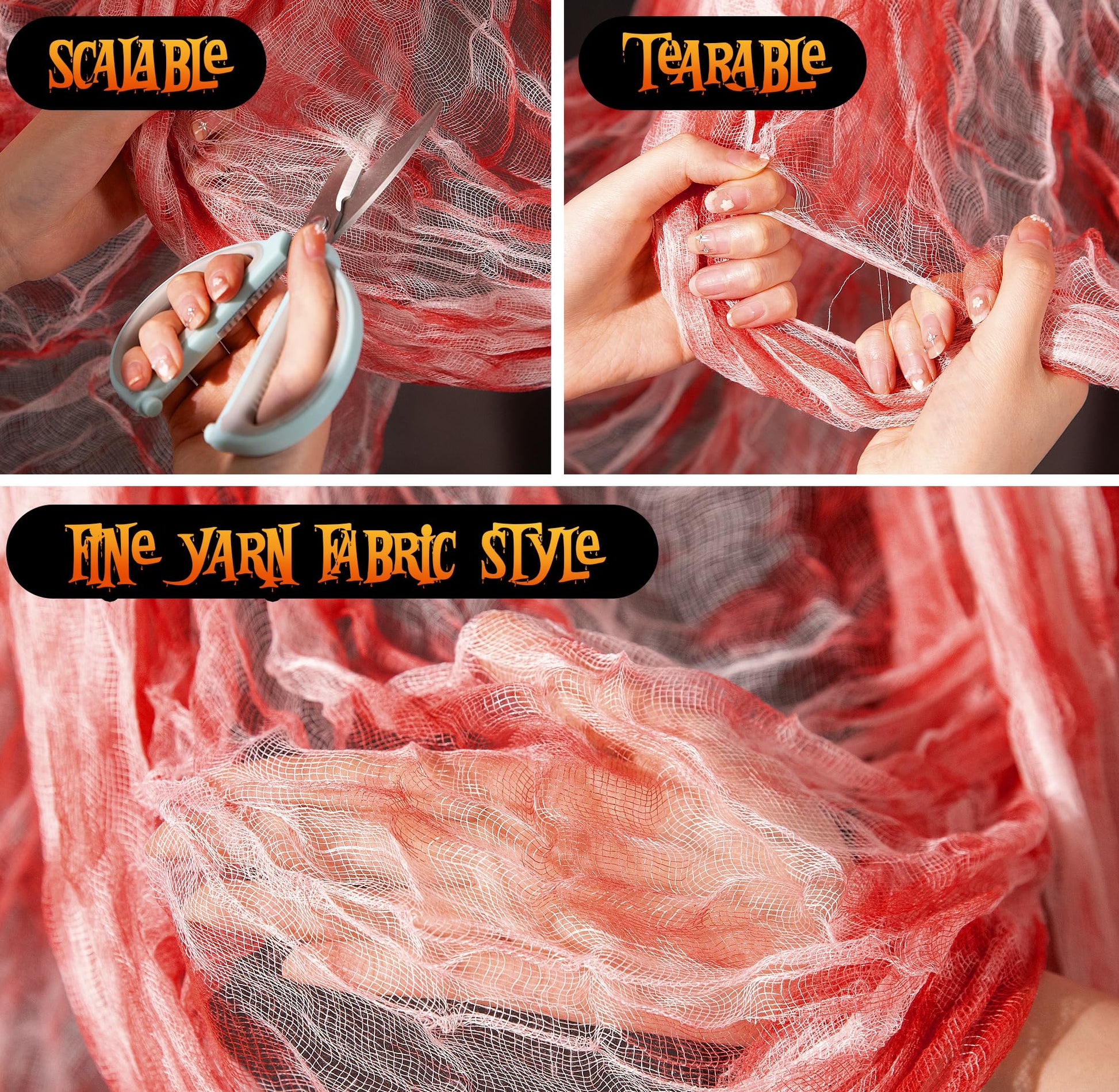 • 【Infinite possibility】You can use it with spider webs, crawling spiders, and other decorations in the Halloween yard.Or you can use scary gauze in strips and hang them on your lamps, create more vivid bloody photos and horror picture backgrounds.