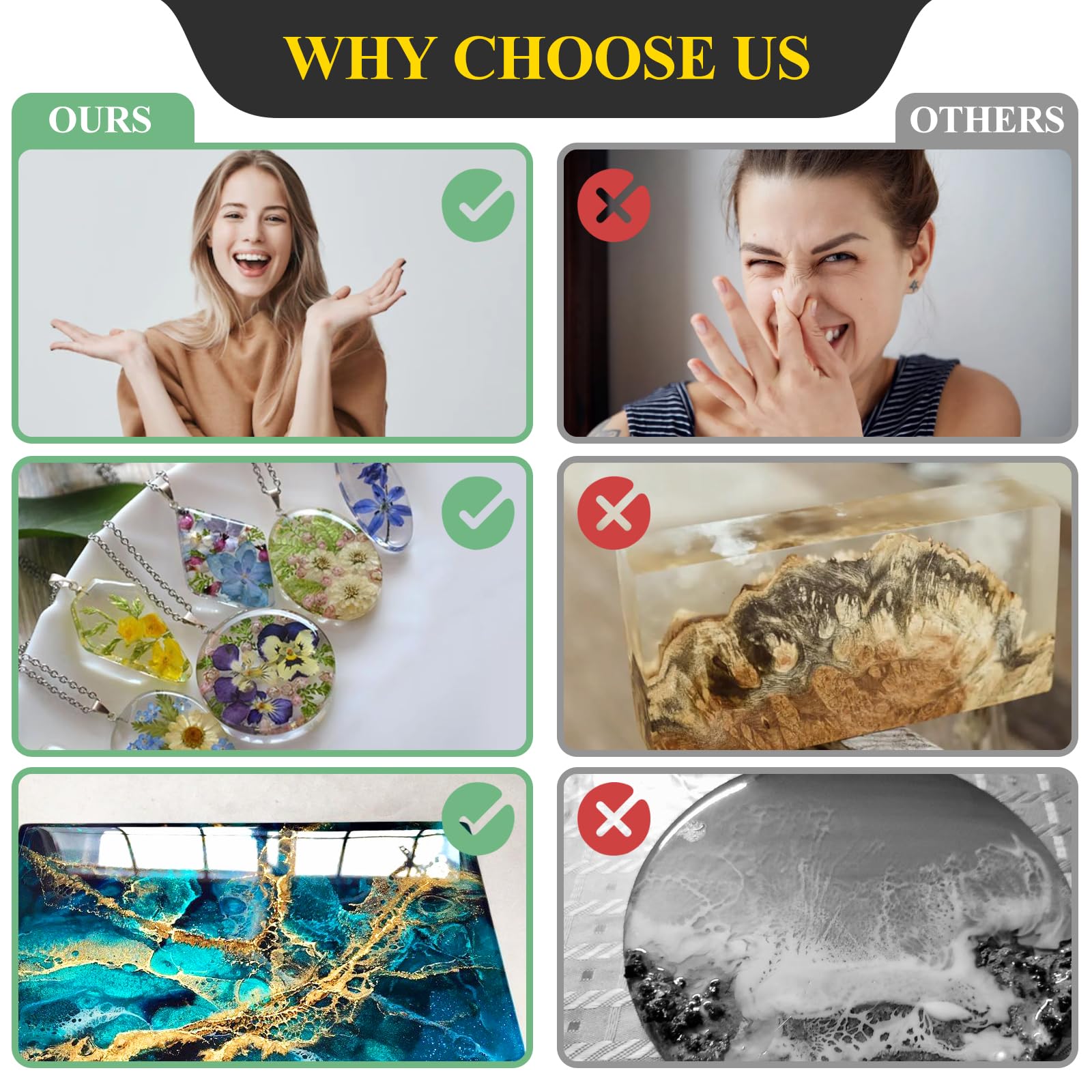 • WHY CHOOSE US – We are an experienced manufacturer specializing in resin development and production. To ensure optimal results, always follow the instructions carefully and conduct a small test before full application. This helps avoid common resin issues, such as curing problems.