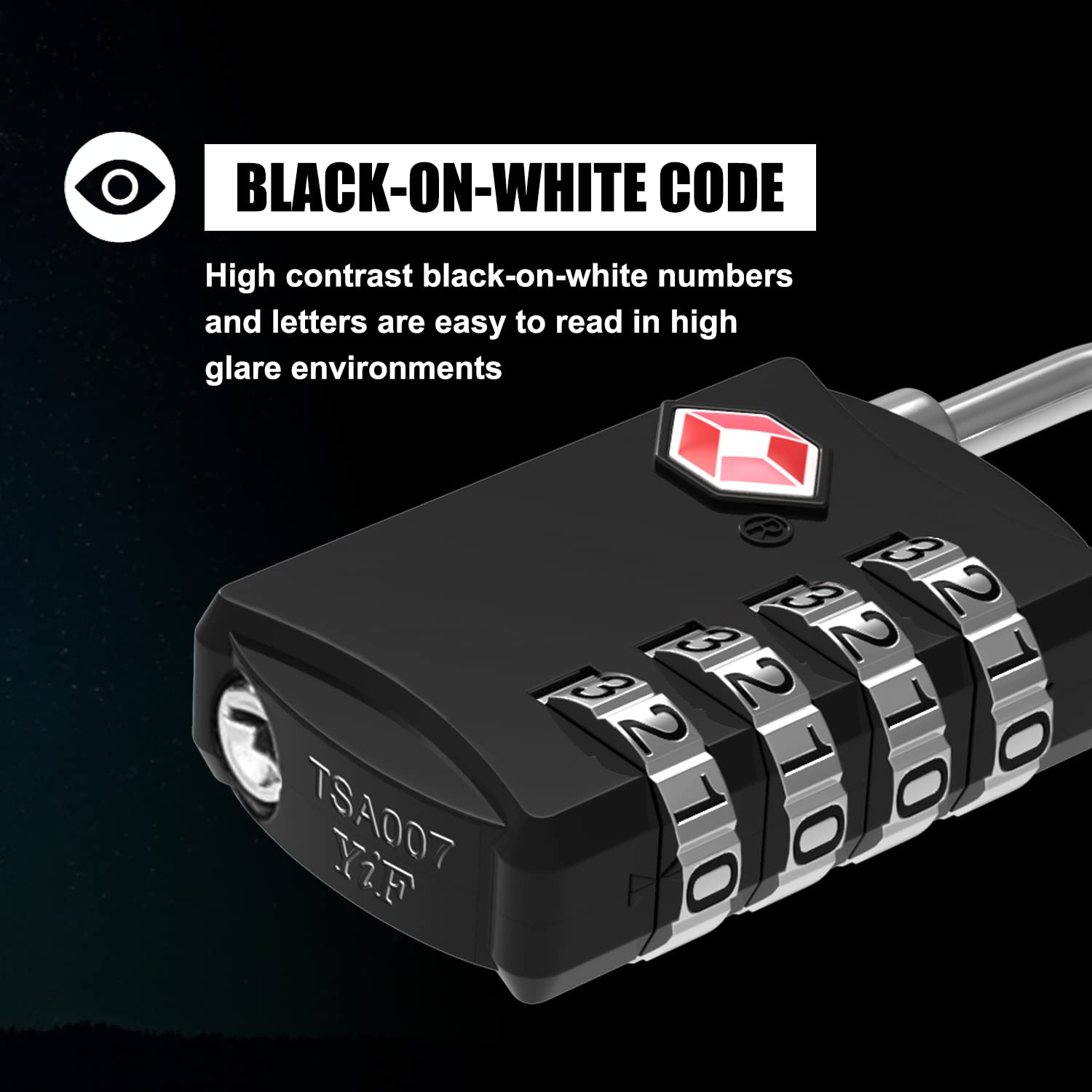 2 Pack 4 Digit TSA Luggage Locks, Diyife Outdoor Waterproof Padlock, Combination Lock for Backpack, Locker, Gate, Toolbox, High-Strength Zinc Alloy Steel - Black & White