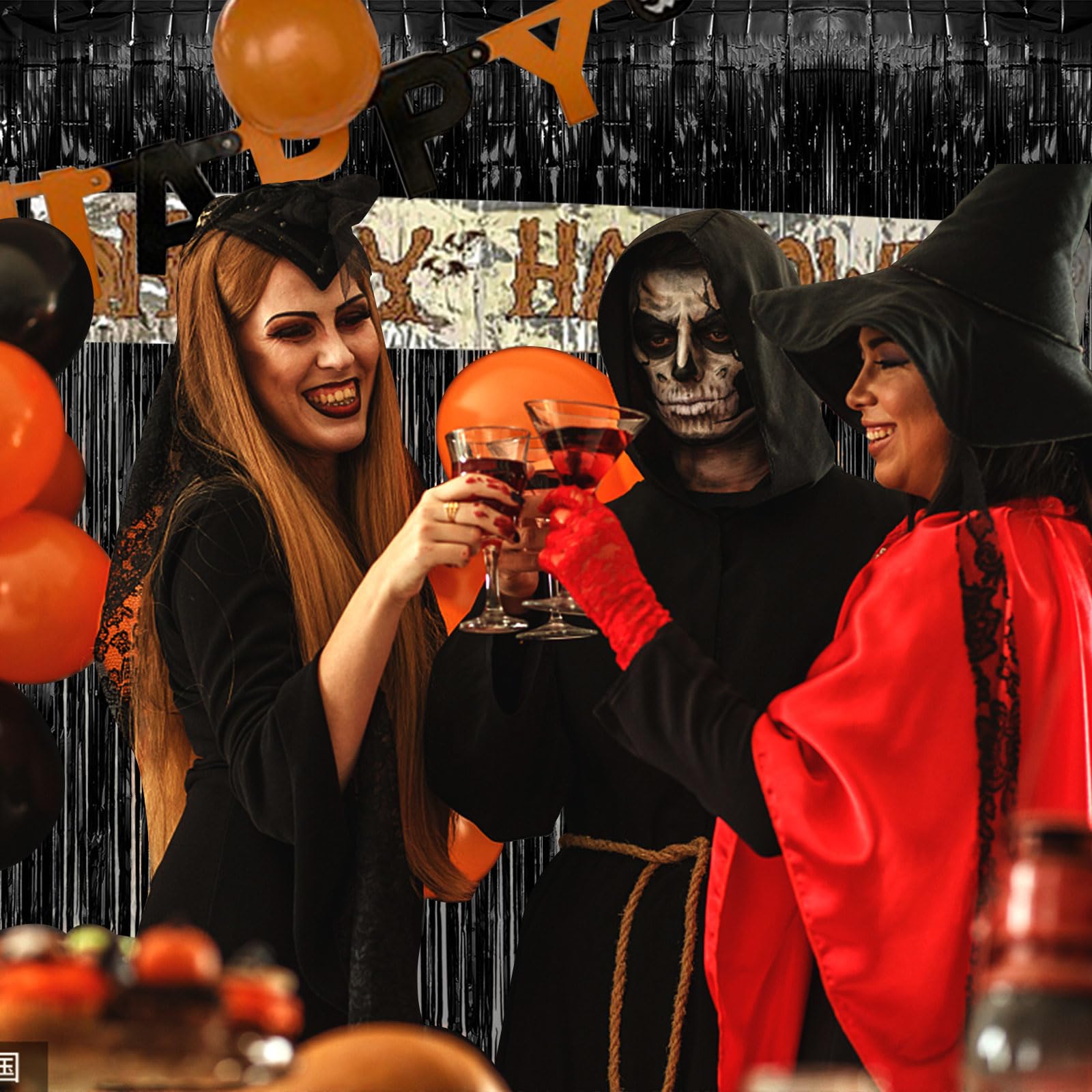 2 Pack Black Party Streamers Backdrop Tinsel Foil Fringe Curtains Halloween Party Decorations Birthday Wednesday Twilight Party Decorations Graduation Wizard Party Supplies