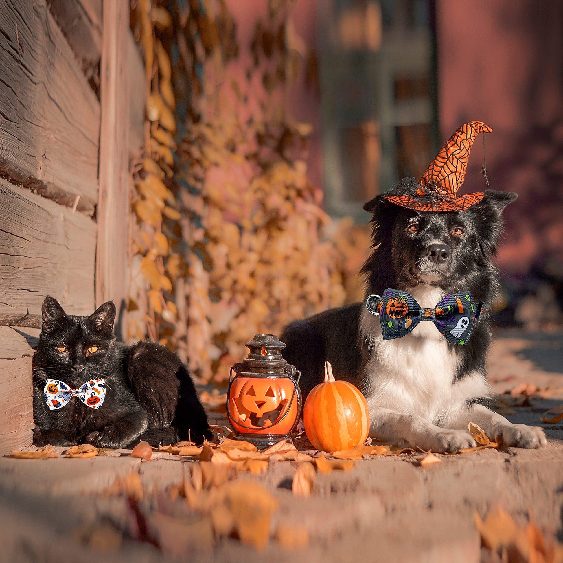 • Unique design: Halloween Jack-O-Lantern & Ghost/Pumpkins pattern Bow tie for pet collar. Made with durable high density polyester webbing, soft, durable and comfortable for most small dogs.