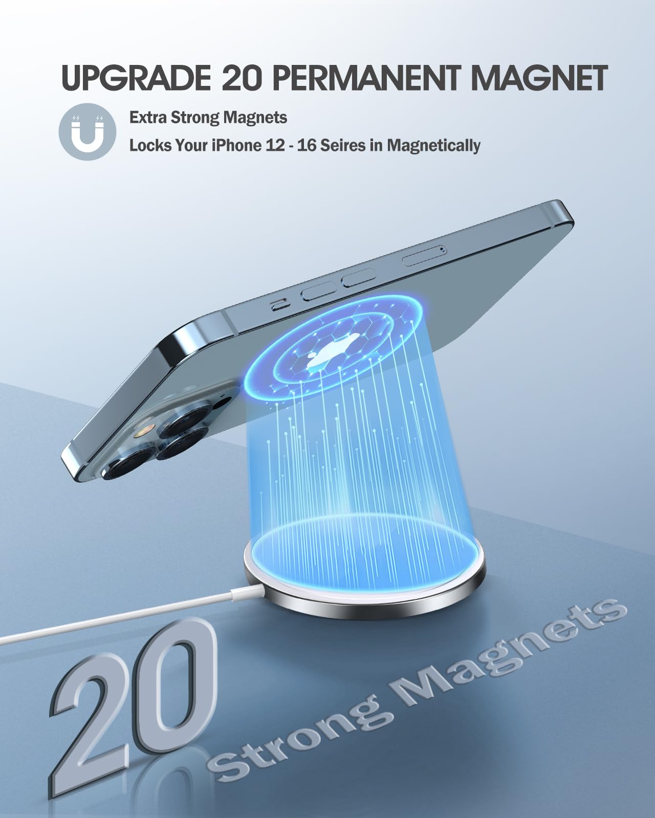 • SPECIFICALLY FOR IPHONE 16/15/14/13/12 SERIES: The 2-pack Magnetic wireless charger makes wireless charging a breeze with its new upgraded magnetic technology. Up to 15W secure magnetic wireless charging pads are perfectly compatible with iPhone 16, iPhone 16 Pro, iPhone 16 Plus, iPhone 16 Pro Max,iPhone 15, iPhone 15 Pro, iPhone 15 Plus, iPhone 15 Pro Max, iPhone 14, iPhone 14 Pro, iPhone 14 Plus, iPhone 14 Pro Max, iPhone 13, 13 Pro, 13 Pro Max, 13 minis; iPhone 12,12 Pro, 12 Pro Max, 12 minis, as well as AirPods Pro /3 and 2 models. ✅Other iPhone models with magnetic cases also support magnetic changing.