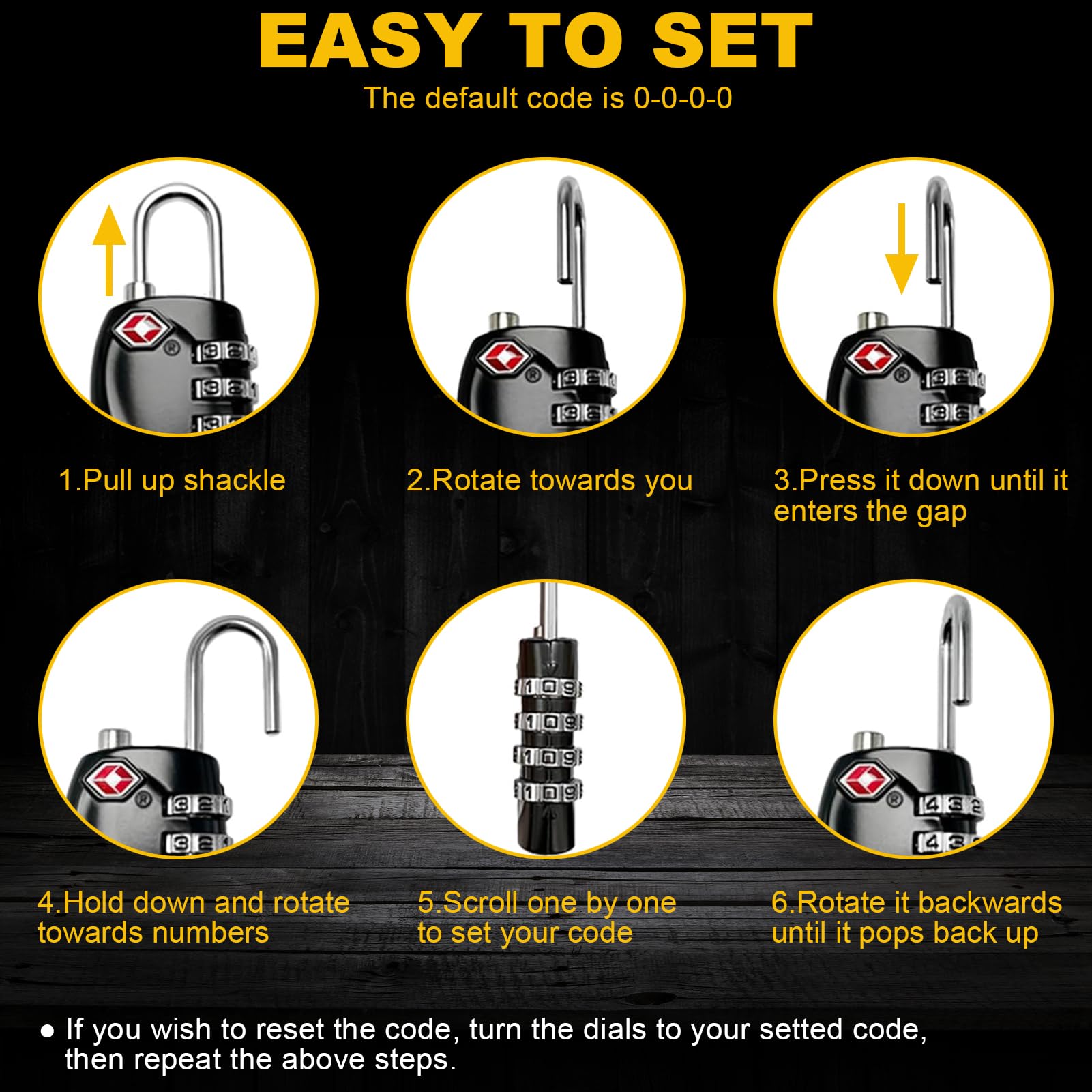 • Easy to Use: With our 2 Pack 4 digit combination gun case locks, you can set your own unique code from 10,000 possible combinations. The gun case locks makes them 10 times more secure than traditional 3-digit locks.You can enjoy the convenience of pad locks with code. Also, instructions for setting your personalized combination are included on the package.The 4-digit combination travel lock can be set or changed effortlessly, and unlocking is quick.
