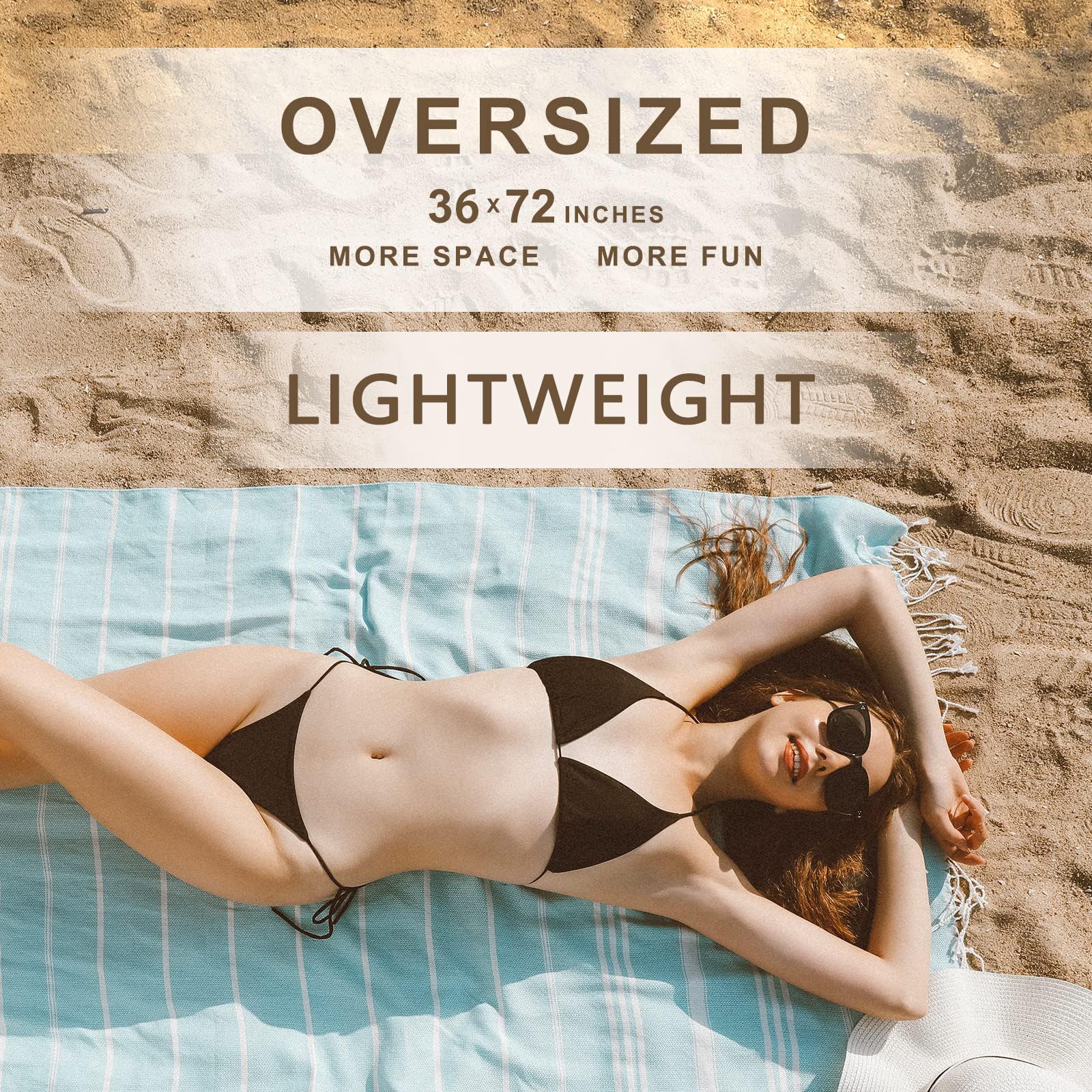 • [Compact And Lightweight]: Designed with your travel needs in mind. This towel is perfect for beach trips, picnics, gym, yoga, hiking, and camping. Its compact size allows you to easily pack it in your luggage or backpack, saving you space and making it easy to carry around. You'll never have to sacrifice comfort for convenience with this lightweight and compact Turkish beach towel.