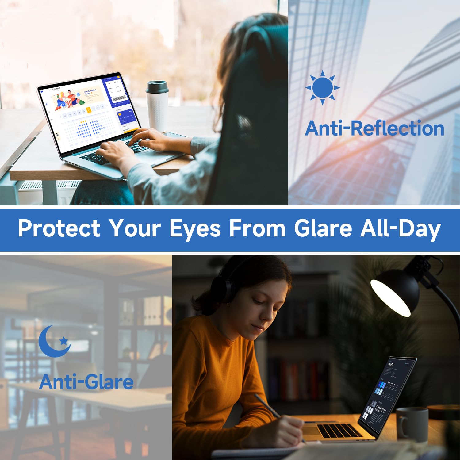 • 【Effective Anti-Blue Light】This blue light screen protector 14 inch features a layered anti-blue light design and multi-layer blue light filtering that effectively blocks harmful blue light, even during extended computer use. Better eye protection means reduced eye strain and fewer headaches.