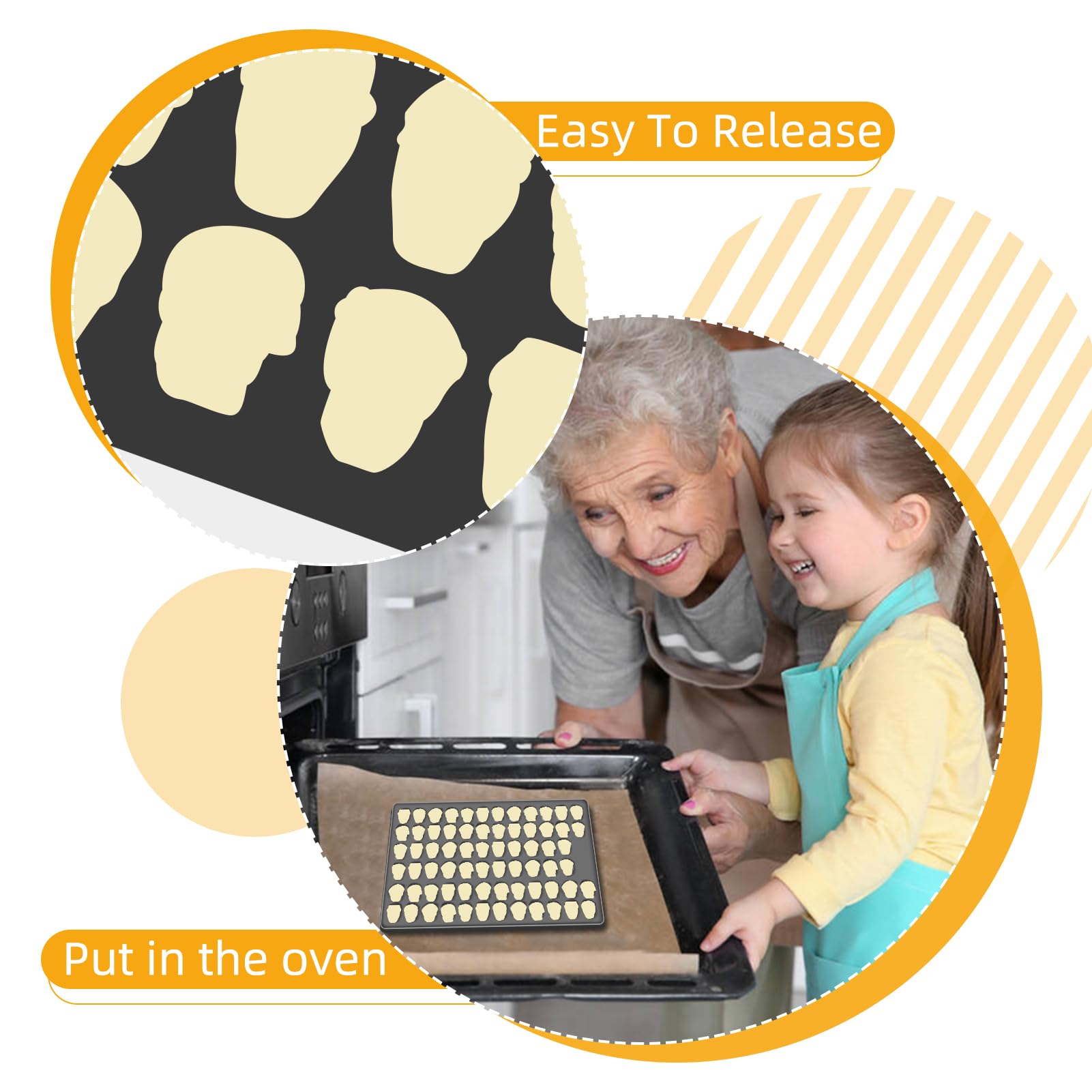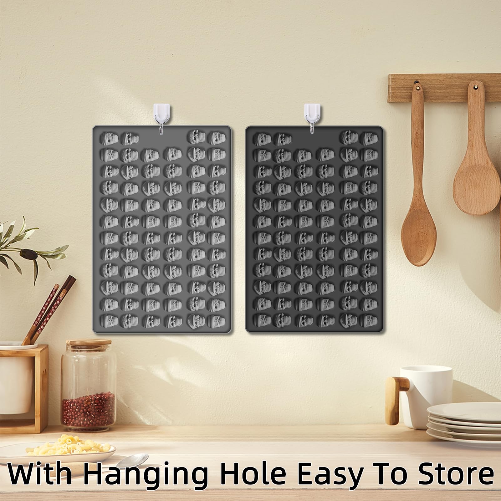 2 PCS Gummy Skull Candy Molds Silicone, 140 Cavity Skull Mini Silicone Mold for Chocolate, Fondant, Candy, Biscuits, Cookie, Jelly,Ice Cube and Dog Training Commands Concept