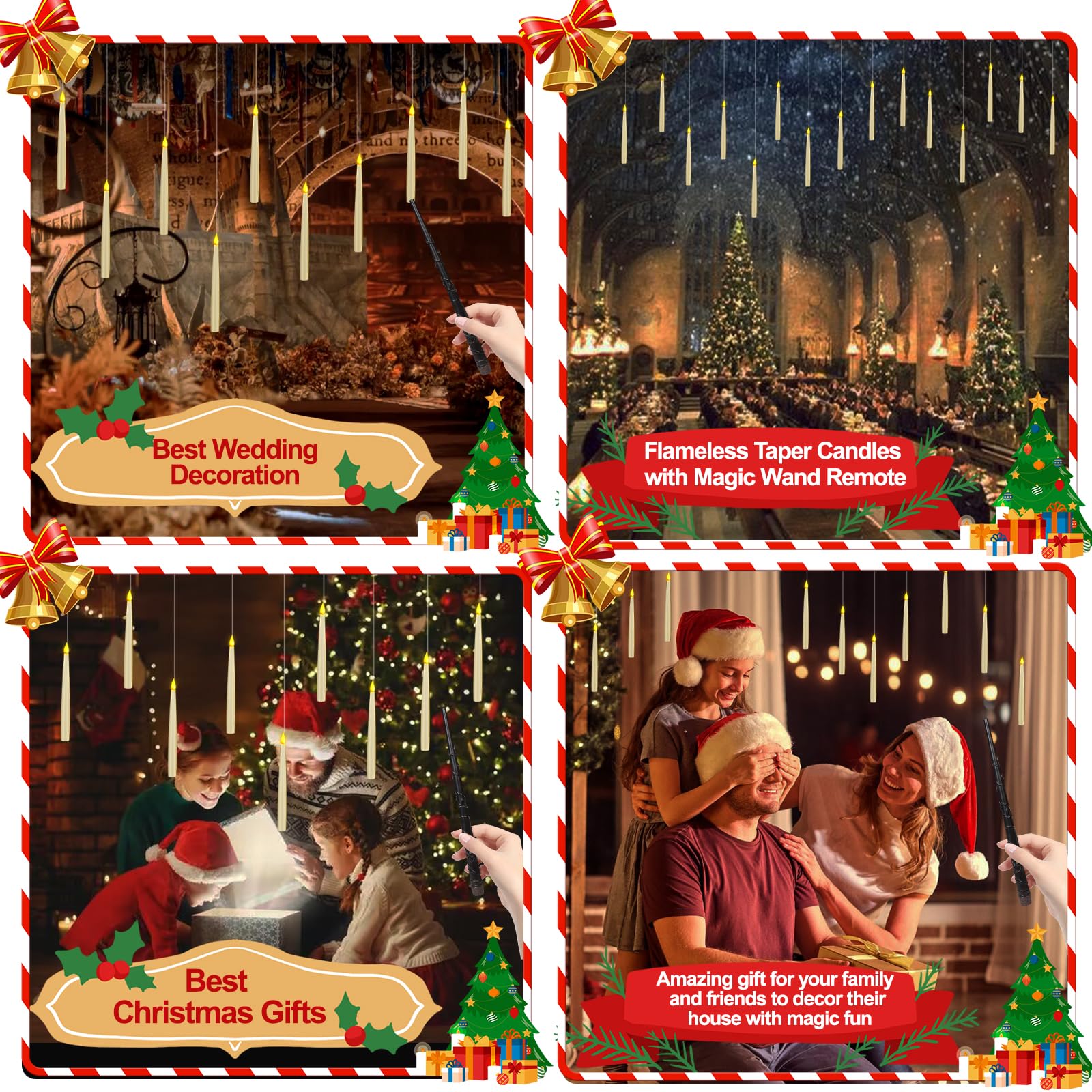 • ✅[Best Decorations for Gift ]:ARLBA LED Floating candles taper candles with magic wand remote control are very suitable for harry potter decoration ,table, church, birthday, wedding, fireplace, Christmas and Halloween decoration decor. Therefore, you can decorate them in various places according to your own preferences, such as the front door, farmhouse, balcony, stairs, bedroom, living room, kitchen, porch, ceiling, indoor or outdoor