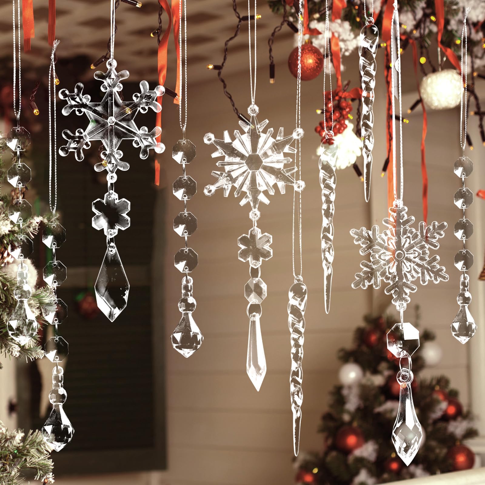 • Reliable Material: These hanging crystals are made of high-quality Acrylic, safe, reliable,with high transparency and not easy to fade or break, can be used for next Christmas