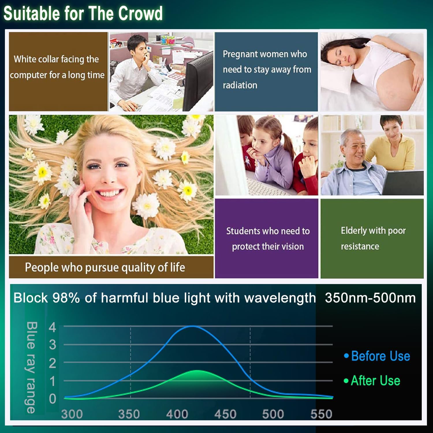 • ☞ RELIEVE EYE FATIGUE AND HELP YOUR SLEEVE BETTER- genius 8-layer design, our eyes protection anti blue light screen protector 100% Block Hazardous UV light and effectively block the most hazardous HEV blue light of 380-495nm and Electromagnetic radiation, help you block electronic hazards