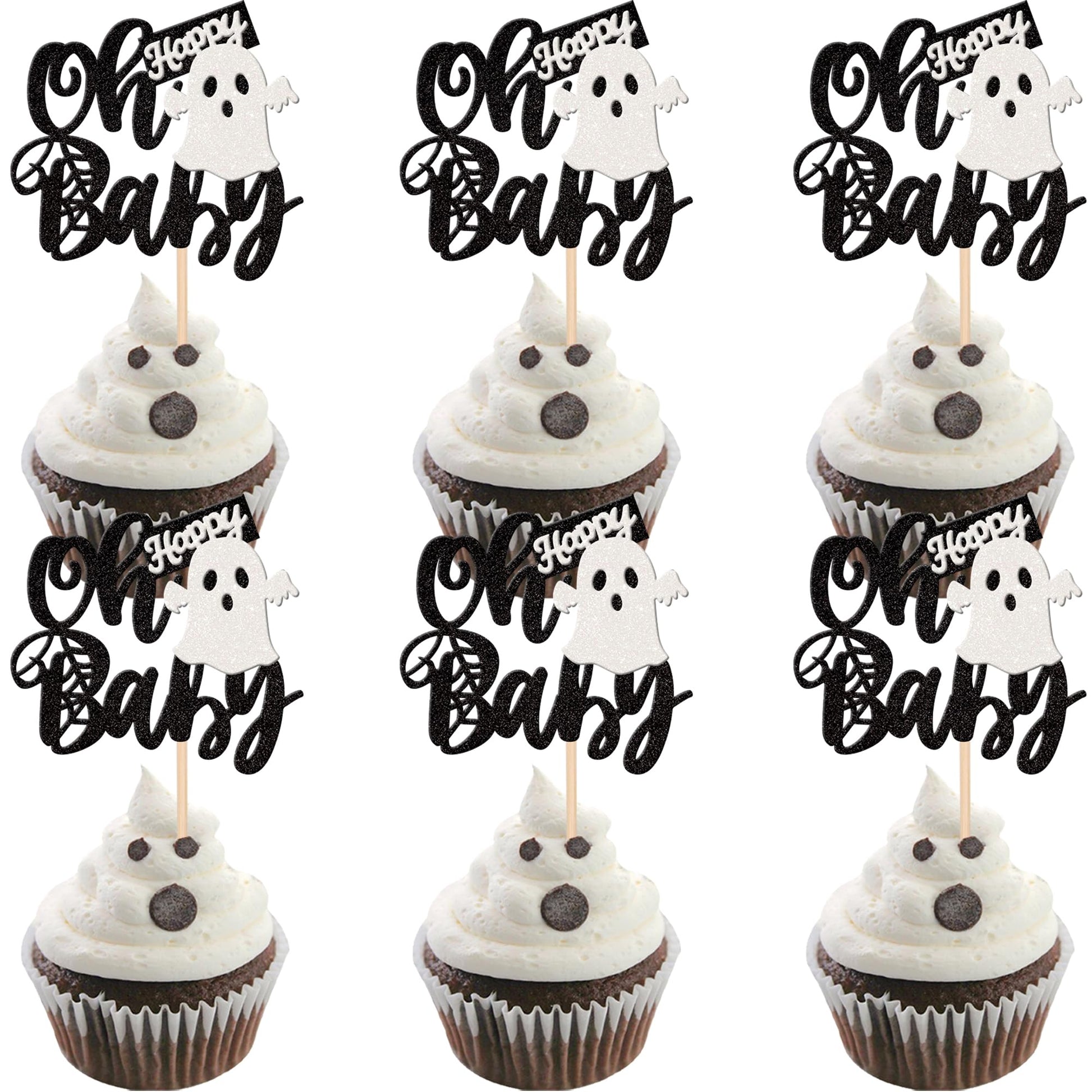 Details: Halloween Ghost Oh Baby Cupcake Toppers for Halloween Theme Baby Shower Kids Birthday Party Cake Decorations Supplies