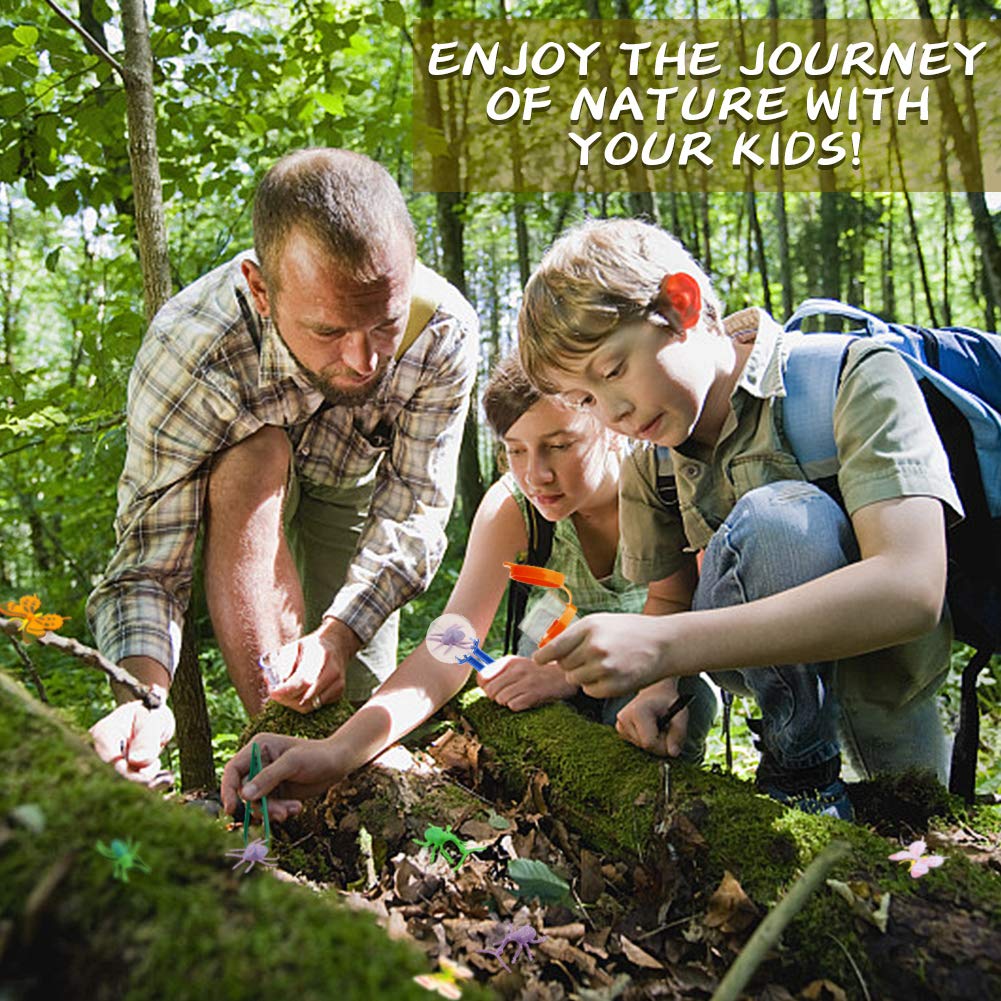 • [Learn about Bugs & Insects] - 4 x magnification for examining plants, insects, and rocks. Wonderfully fun for camping trips and outdoor or indoor investigations. Use the insect clamp and butterfly net to the catch insects you are interested in. Kids don't have to touch the bugs. And bug collectors can make small bug accompany you for a longer time.