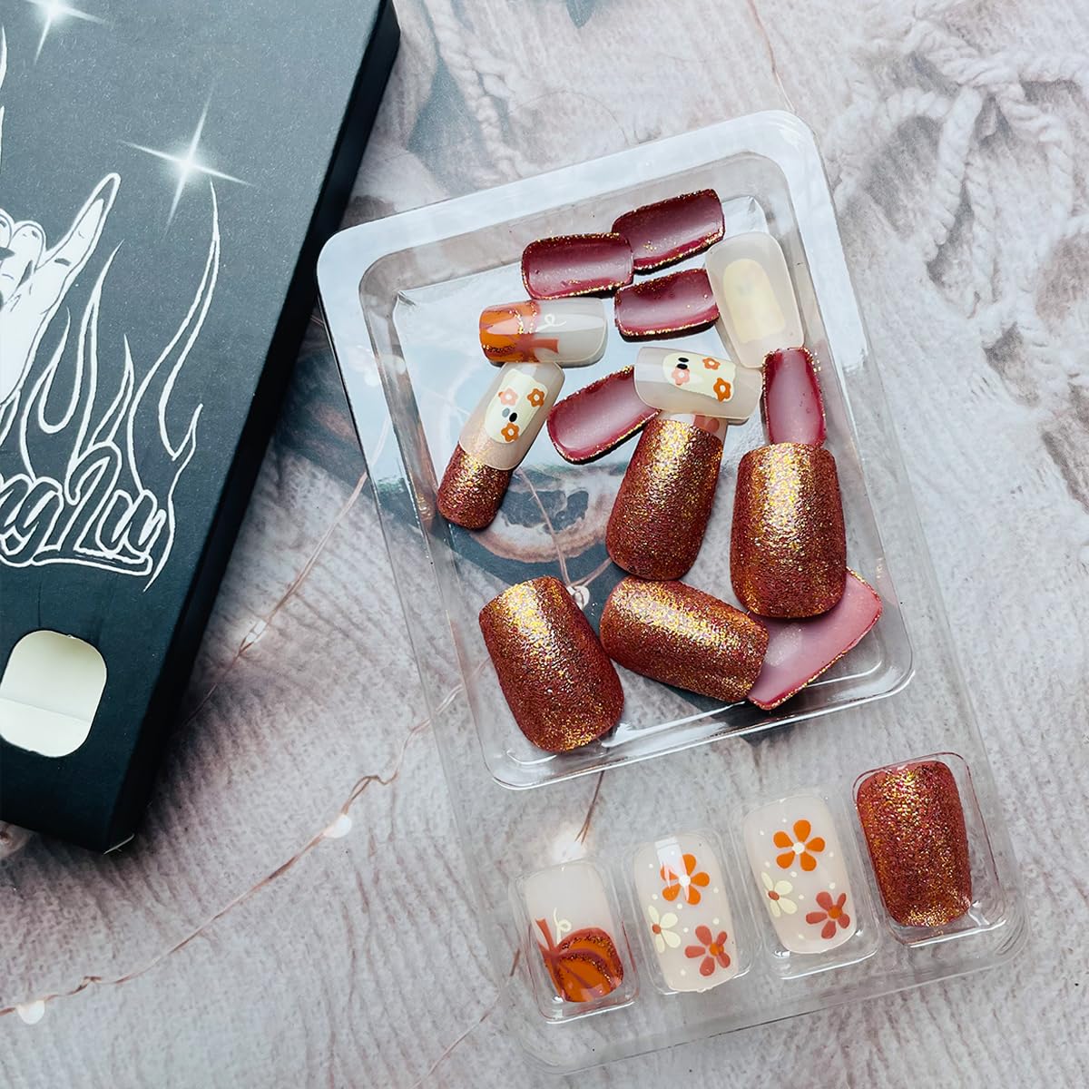• 【Perfect Gift】Fall pumpkin acrylic Nails a perfect gift for girlfriend, wife, friends and relatives. If you have any questions, please contact us, we will reply your information in time.
