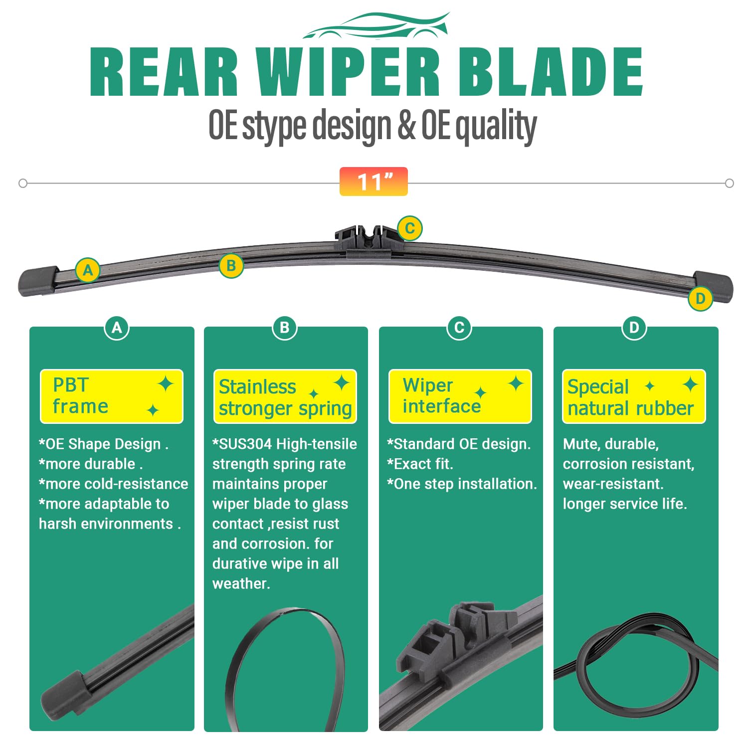 • [FITMENT]: Replacement for 2011 2012 2013 2014 2015 2016 2017 2018 2019 2020 2021 2022 2023 2024 Ford Explorer 26inch + 22inch front with 11inch rear windshield wiper blades.