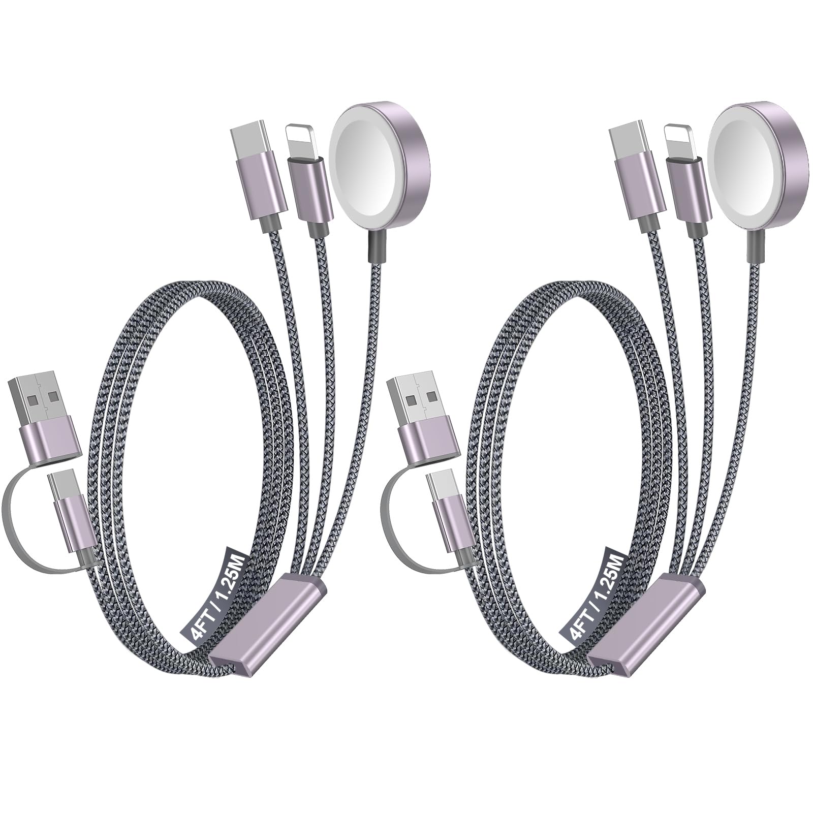 2Pack Multi Fast Charging Cable for Travel Vacation Essentials,iPhone 17 Charger,Apple Watch Charger,3-in-2USB A/Type C/Lightning Cable for iWatch,iPhone 17-11,Nintendo Switch,Airpods,Home,Office-4FT
