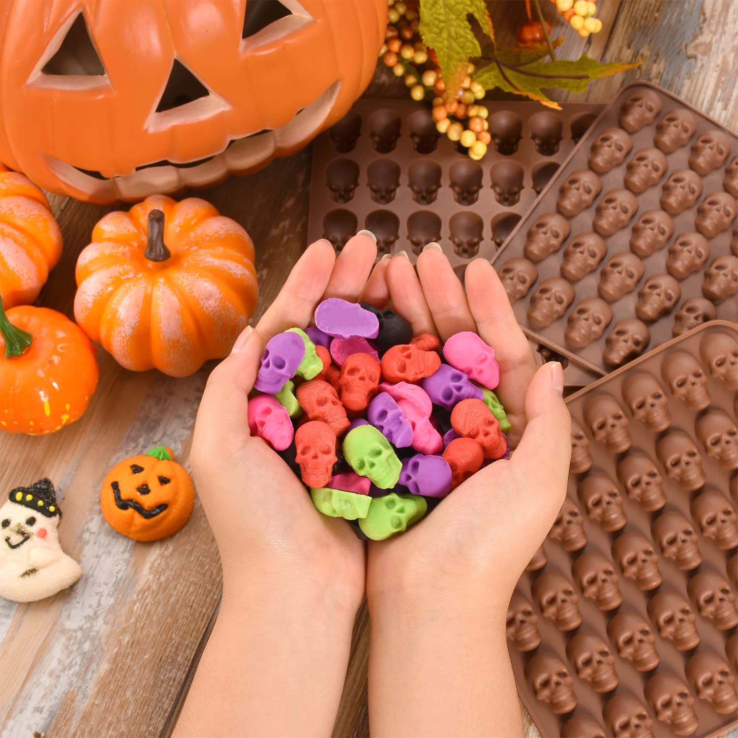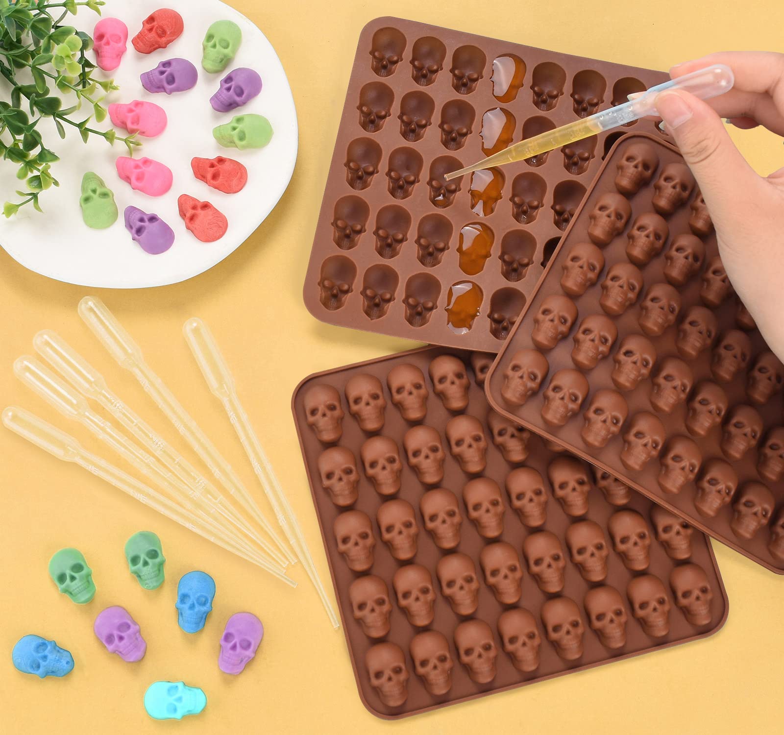 • 3 Pack Gummy Skull Silicone Candy Molds, Halloween Mini Skull Mold with 3 Droppers Non-stick Candy Molds Skull Gummy Molds for Halloween Candy, Chocolate, Ice Cube, Jelly, Dog Treats