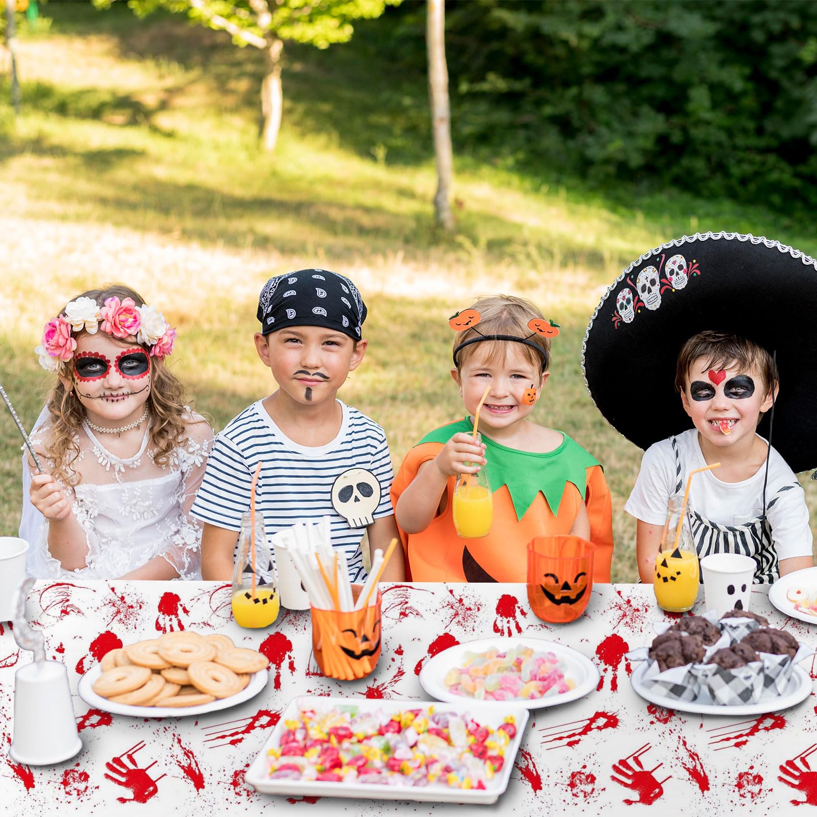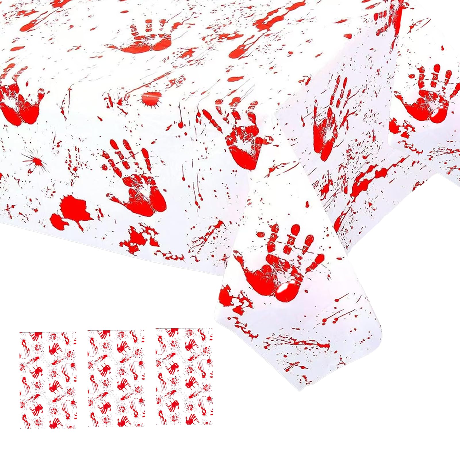 • BLOOD SPLATTER DESIGN: Featuring realistic red handprints and blood splatter patterns, each table cover adds a spooky and thrilling touch to your party decor. Perfect for creating a creepy atmosphere at your Halloween or horror-themed event.