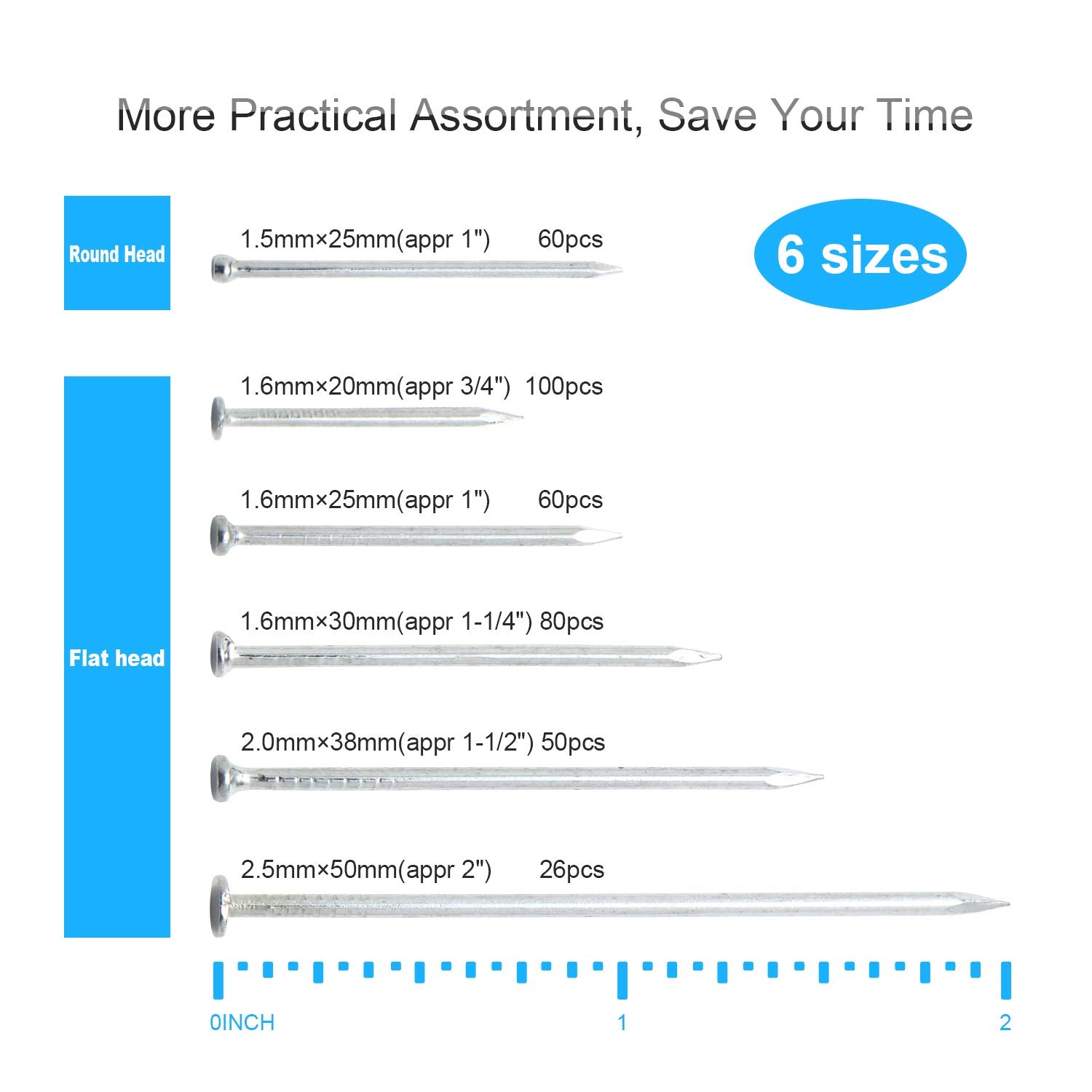 • Various Size: A kit includes six sizes( 2', 1-1/2', 1-1/4', 1', 3/4' ) of hardware nails, with 376 nails in each kit to suit your diverse projects.
