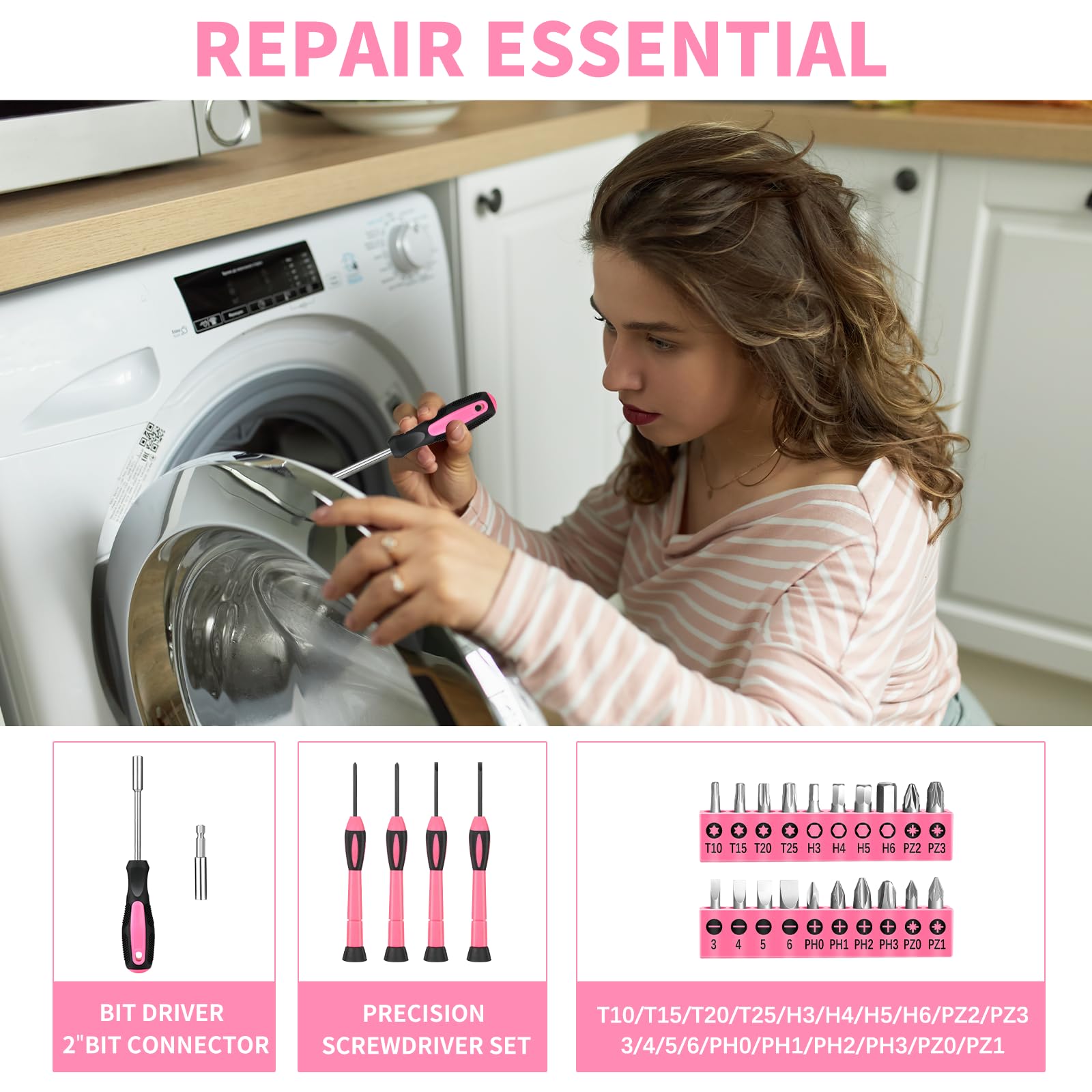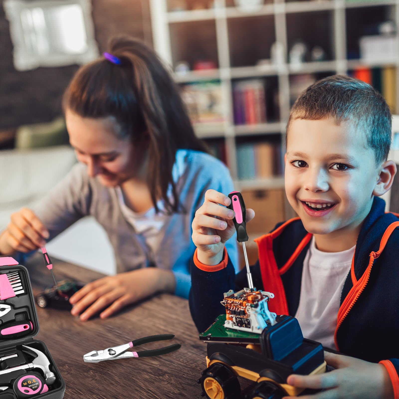 39 Piece All Purpose Basic Household Pink Tool Kit for Women - Small Tool Set with Toolbox Great for Home, Garage, Office and College Dormitory Use
