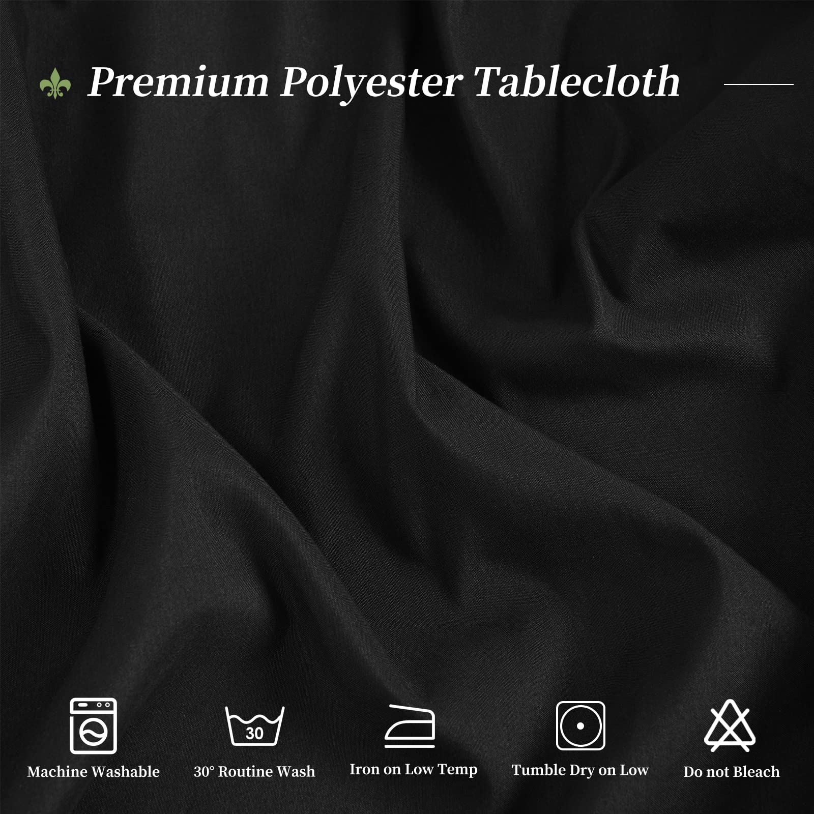 • 【Exquisite Workmanship】This tablecloth is a 1-piece seamless premium table cloth. Every part of the tablecloths is flat and smooth. The black round table cover are designed with folded borders and fine stitching to ensure an elegant look and no loose threads. Our color-fast dyes stay vibrant and true, and will not fade or transfer during washing or use. The party round polyester tablecloth makes your dining table neat, elegant and stylish.