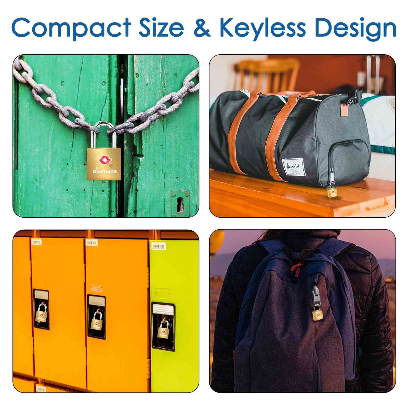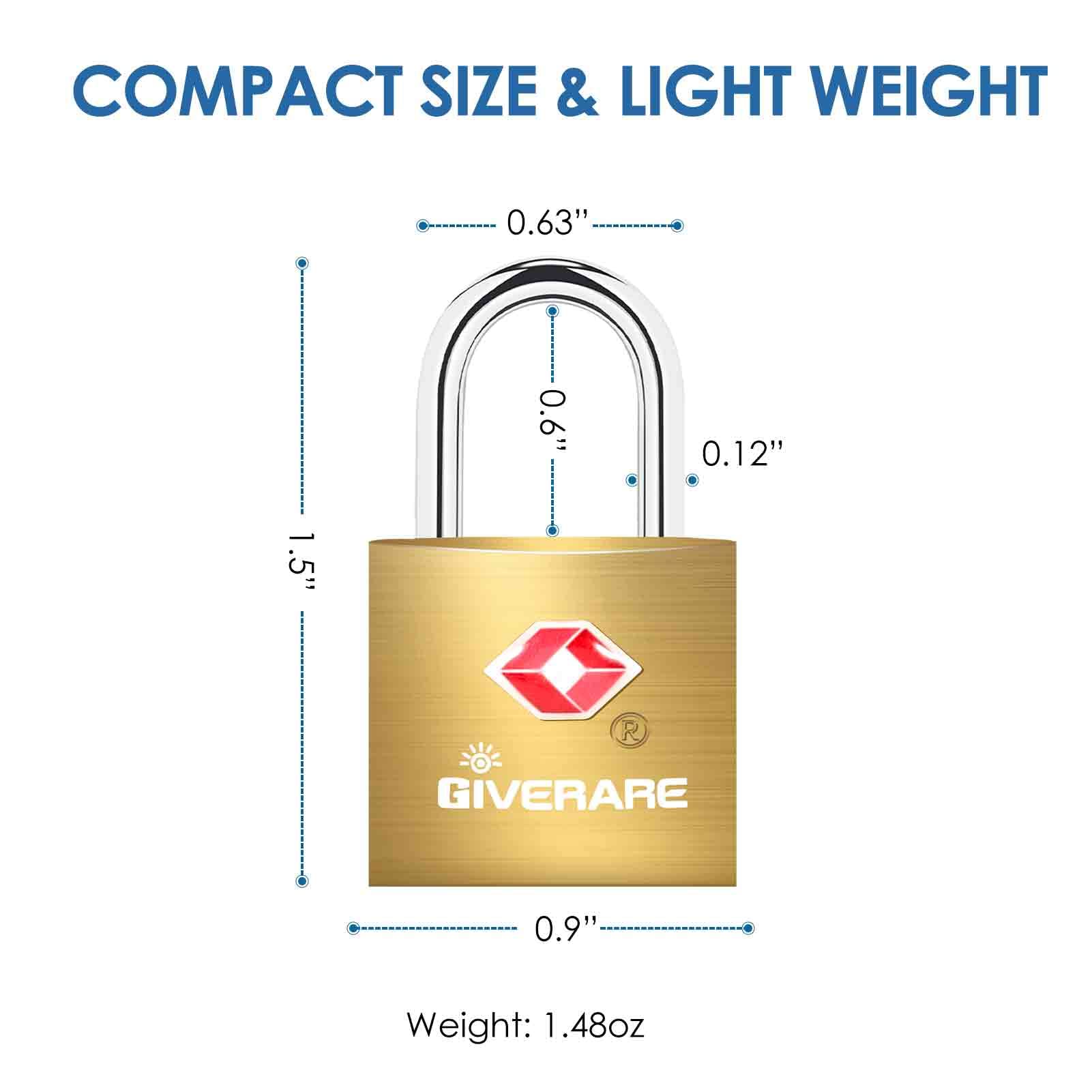 4 Pack TSA Approved Travel Luggage Locks with Keys, Solid Brass Copper Keyed Padlock, Small Locks for Suitcase, Backpack, Gym Locker, Jewelry Box, Gold-by GIVERARE