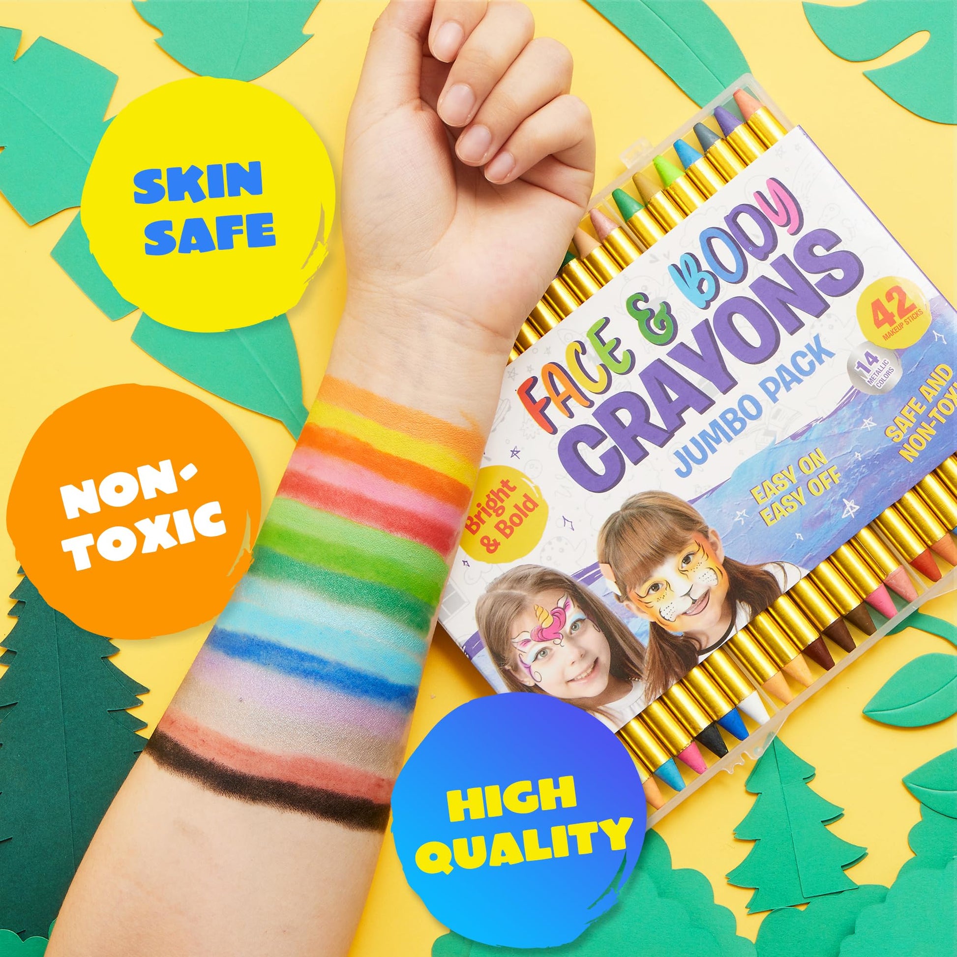 42PCS Face and Body Paint Crayons, XL Face Painting Kit Safe and Non-Toxic Ultimate Party Pack Including 14 Metallic Colors for Birthday Makeup Party Supplies, Festivals, Gifts for Kids Girls Boys