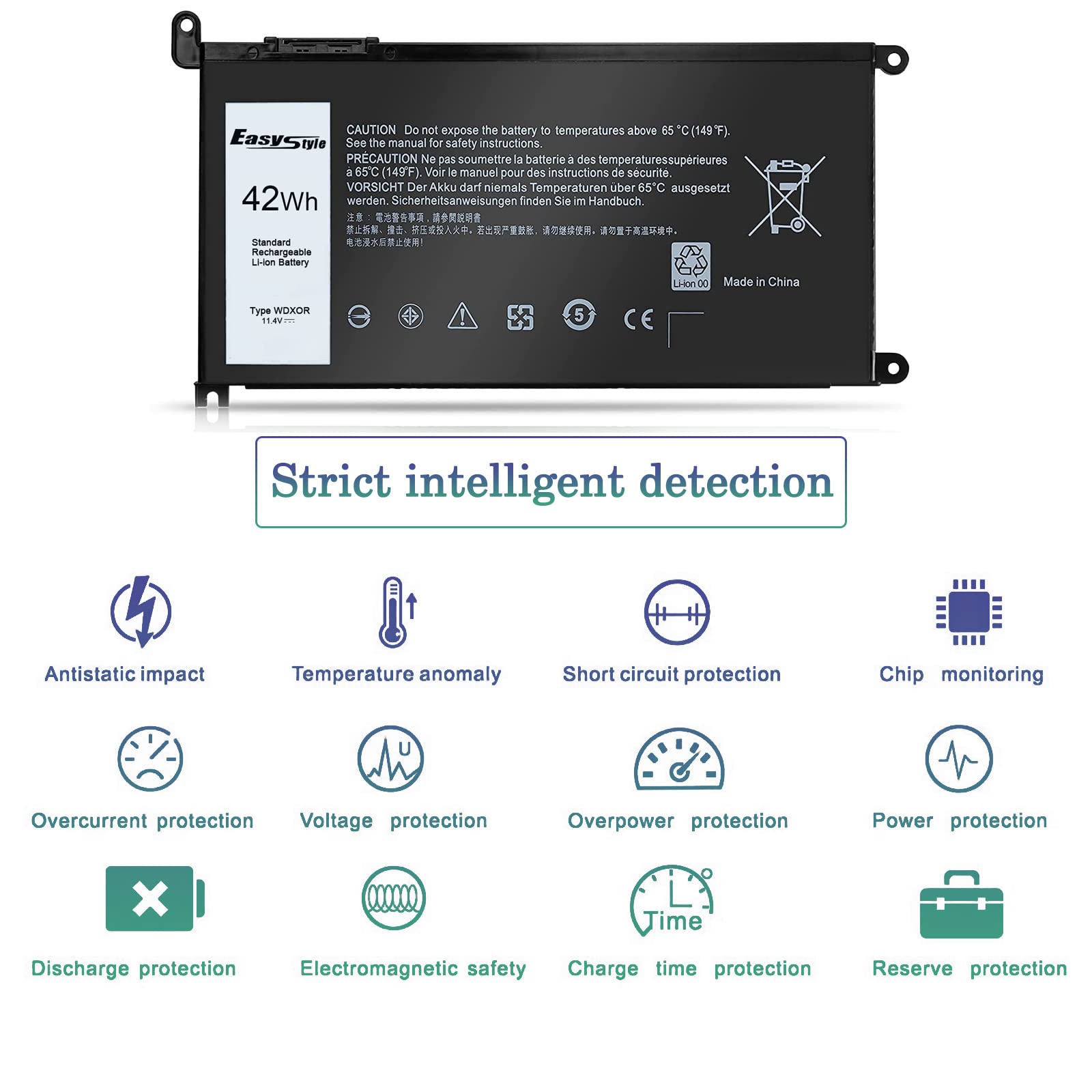 • Specification - Dell laptop WDXOR Replacement Battery Type: Li-ion; Voltage: 11.4V; Capacity: 42WH; Cells:3-Cell; Model: WDX0R. !!! Notice!!! Not compatible with 33YDH(56Wh 4-Cell) or YYRD6(42Wh 3-Cell), please check the original battery before purchasing to make sure it is compatible