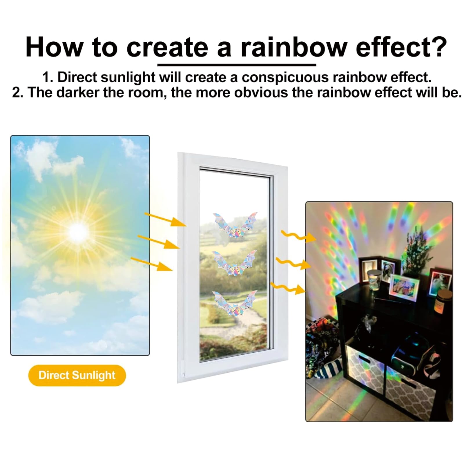 45PCS Halloween Bat Decoration Stickers for Bird Strikes - Anti-Collision Window Decals to Save Birds From Collisions, Non-Adhesive Reusable Vinyl Rainbow Stickers
