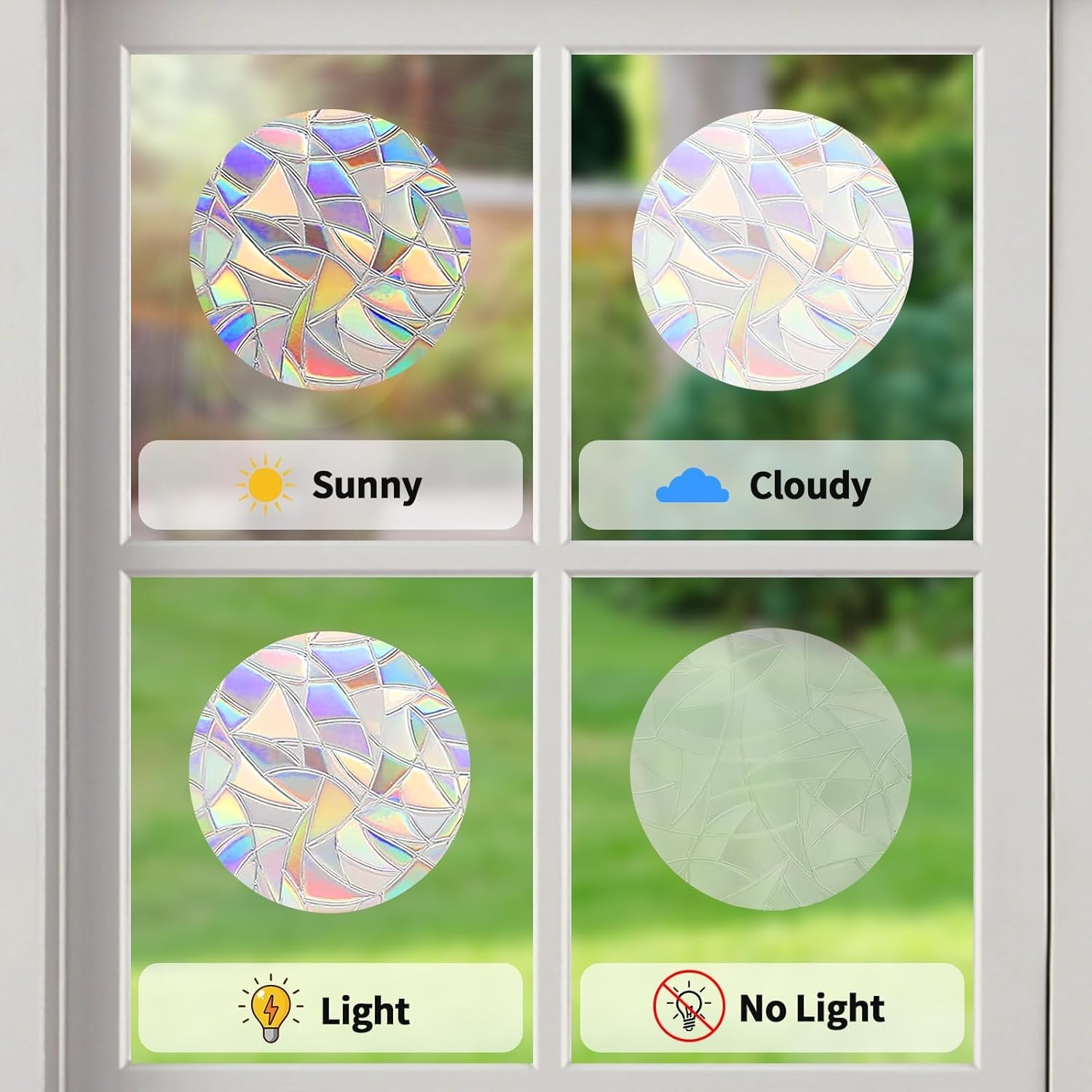 • 【Rainbow window stickers】 Reflect sunlight to create a stunning rainbow effect in your space. Sizes vary from 1.1' to 4.1' to capture and disperse light beautifully.