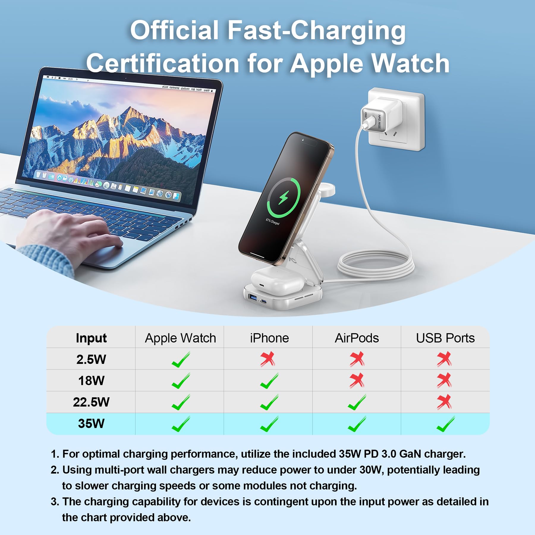 • Made for MagSafe: Equipped with a 35W GaN power charger and N52-grade magnets, this charger provides a secure hold and ensures your device never slips. Enjoy up to 15W of high-speed charging for iPhone 16/15/14/13/12 series with seamless magnetic alignment through Apple MagSafe technology.