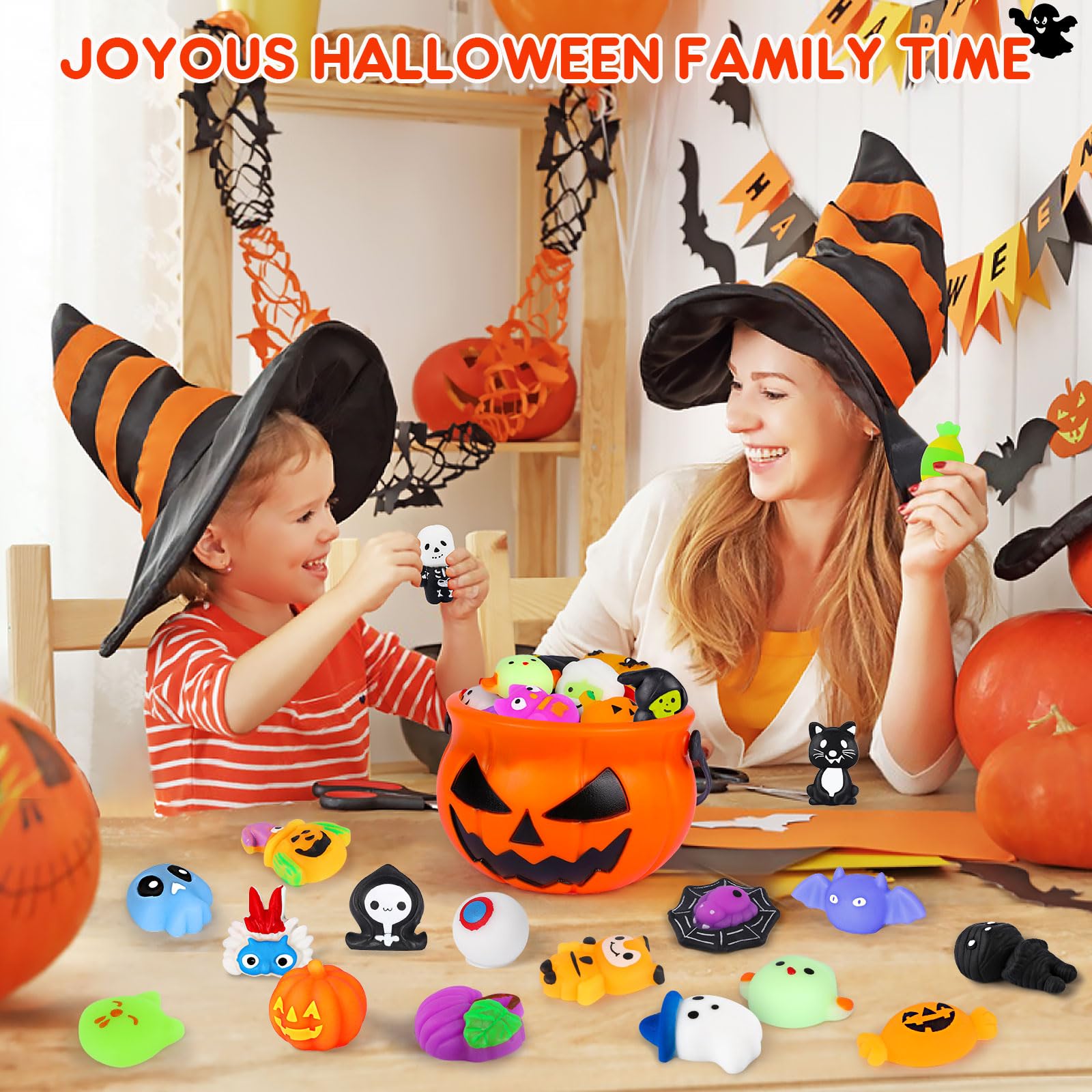 • Novelty Halloween Theme Squishys: 50pcs random mini squishy, made by high quality TPR material, amazing soft to squeeze animal stress toys, very comfortable hand feeling and promote blood circulation. Specially equip with pumpkin bucket, convenient for storage after playing. Mochi squishy toys are great decompression toys and fidget toys! Once you get mochi squeeze toys, the fun begins