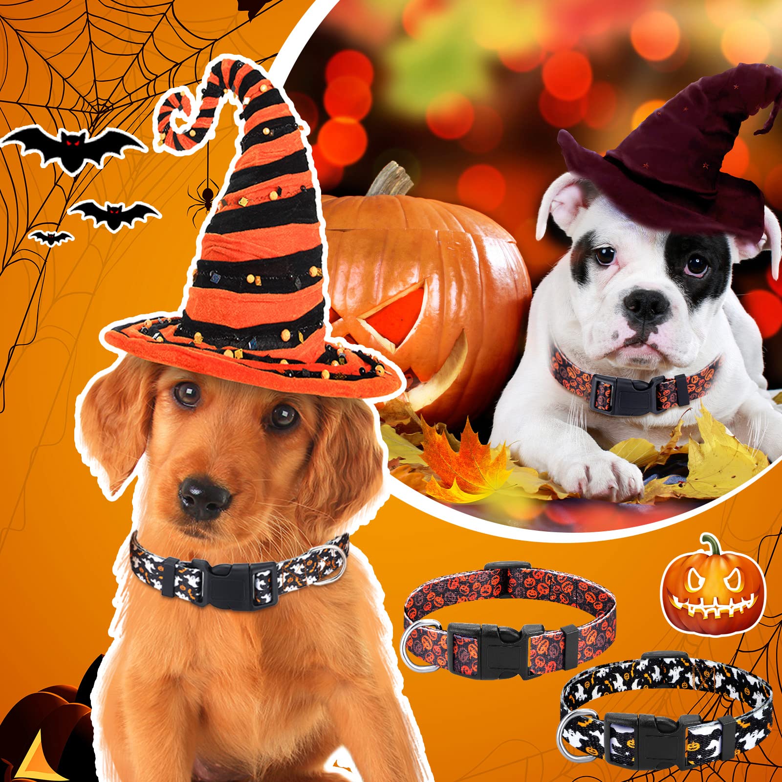 • More Size Options: Halloween collars for dogs have 3 different sizes for your choice, the small dog collar length of about 10-13.7 inches, width of about 0.59 inch; Medium dog collar length of about 12.2-17.7 inches, width of about 0.79 inch; Large dog collar length of about 13.8-21.7 inches, width of about 0.98 inch; Please check the size carefully before buying