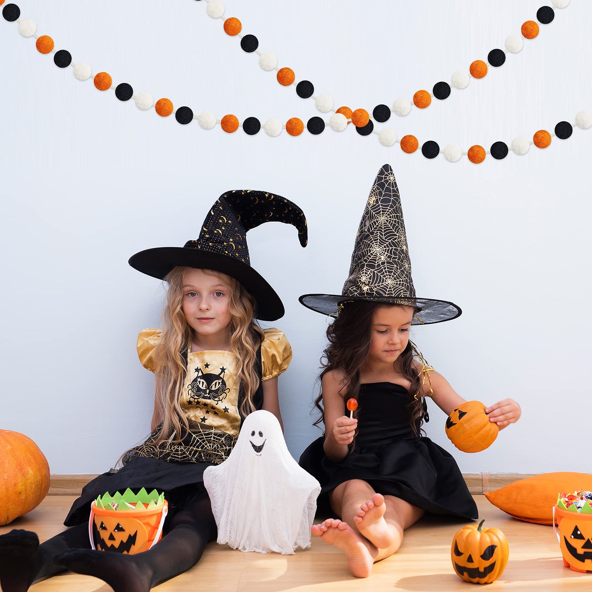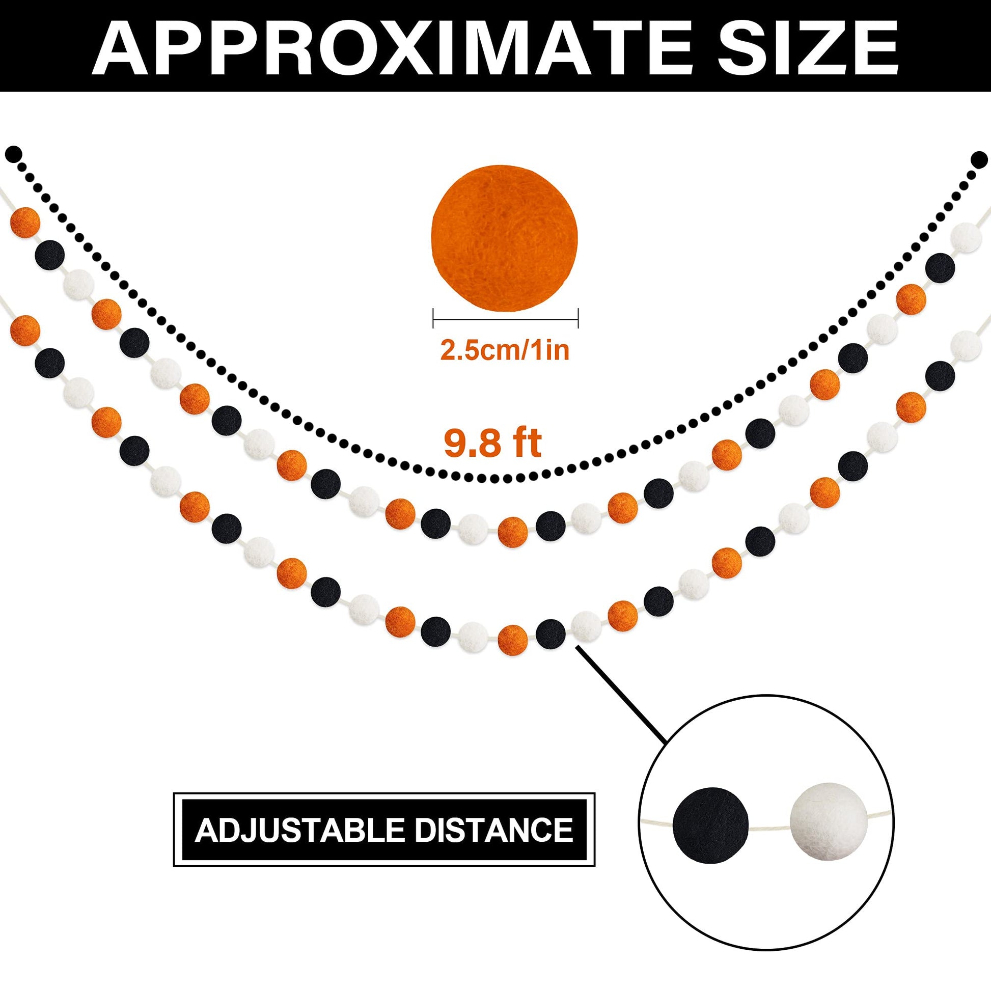 • HALLOWEEN FESTIVE FELT BALL GARLANDS -- The package comes with 2 strands of felt ball garlands, each garland has 30 felt balls, total 60pcs balls. These lovely felt ball garlands are combination of black felt ball, white felt balls and orange felt balls, which will really brighten up your halloween festive decorations and add more festive atmosphere to your party.