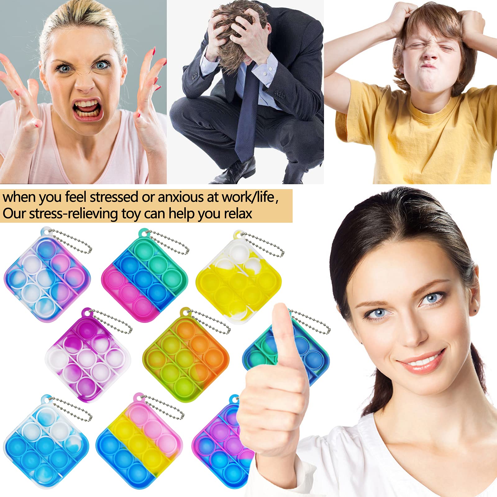 60 Pcs Mini Pop Bubble Fidget Toys for Party Favors, Small Silicone Pop Keychain Bulk for Classroom Prizes,Goodie Bag Stuffers Christmas Valentine Gifts for Kid Student