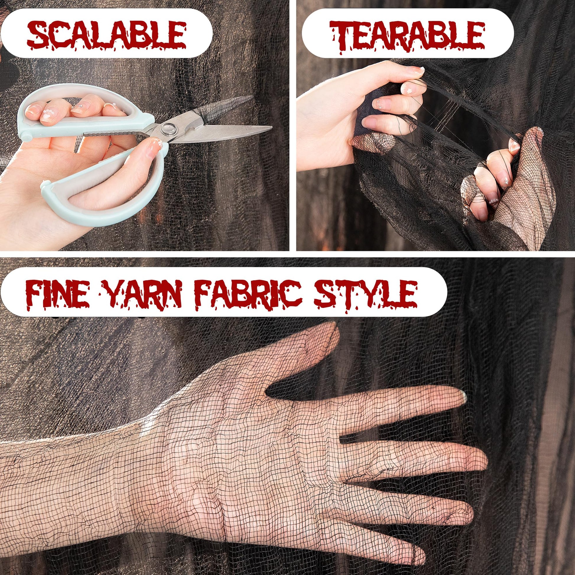 600" x 85" Creepy Halloween Cloth - Black Spooky Fabric - Large Creepy Halloween Decorations for Haunted House, Window Backdrops, Garden Party, Yard, Wall, Doorway