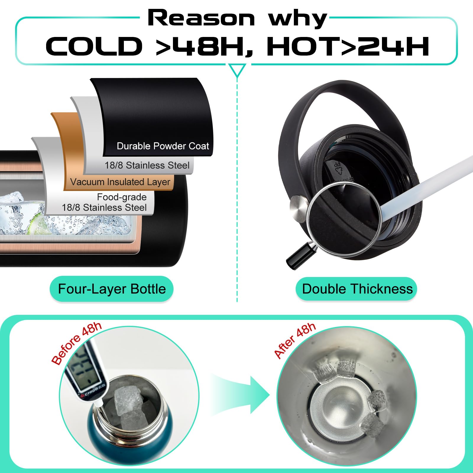 • 2 LID OPTIONS (Auto-spout & Straw): two different lids are complete LEAK PROOF & design for easy drink. The pops-up lid for easy drinking and seals shut for no leaks when you're on the go. The straw lid makes it easy to enjoy spill-proof sips, and package come with a alternative straw & a straw brush for easy cleaning