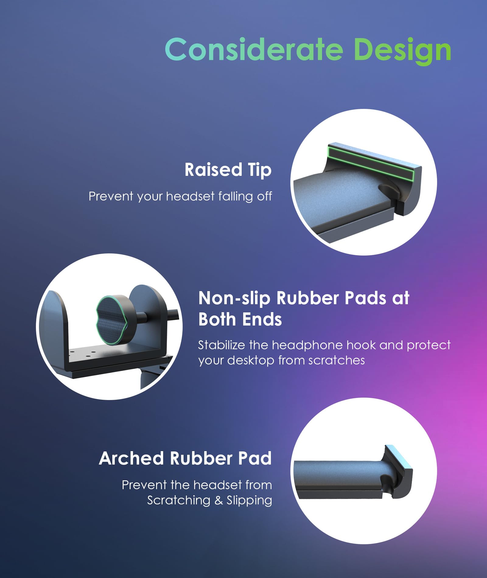 • Upgraded Version-Cable Holder Added: Keep your headset’s cable in place and prevent your cables from snagging or dragging on the ground. You can also store your USB charging cables. Keep your desk tidy. Practical and convenient! Great for home, office, classroom