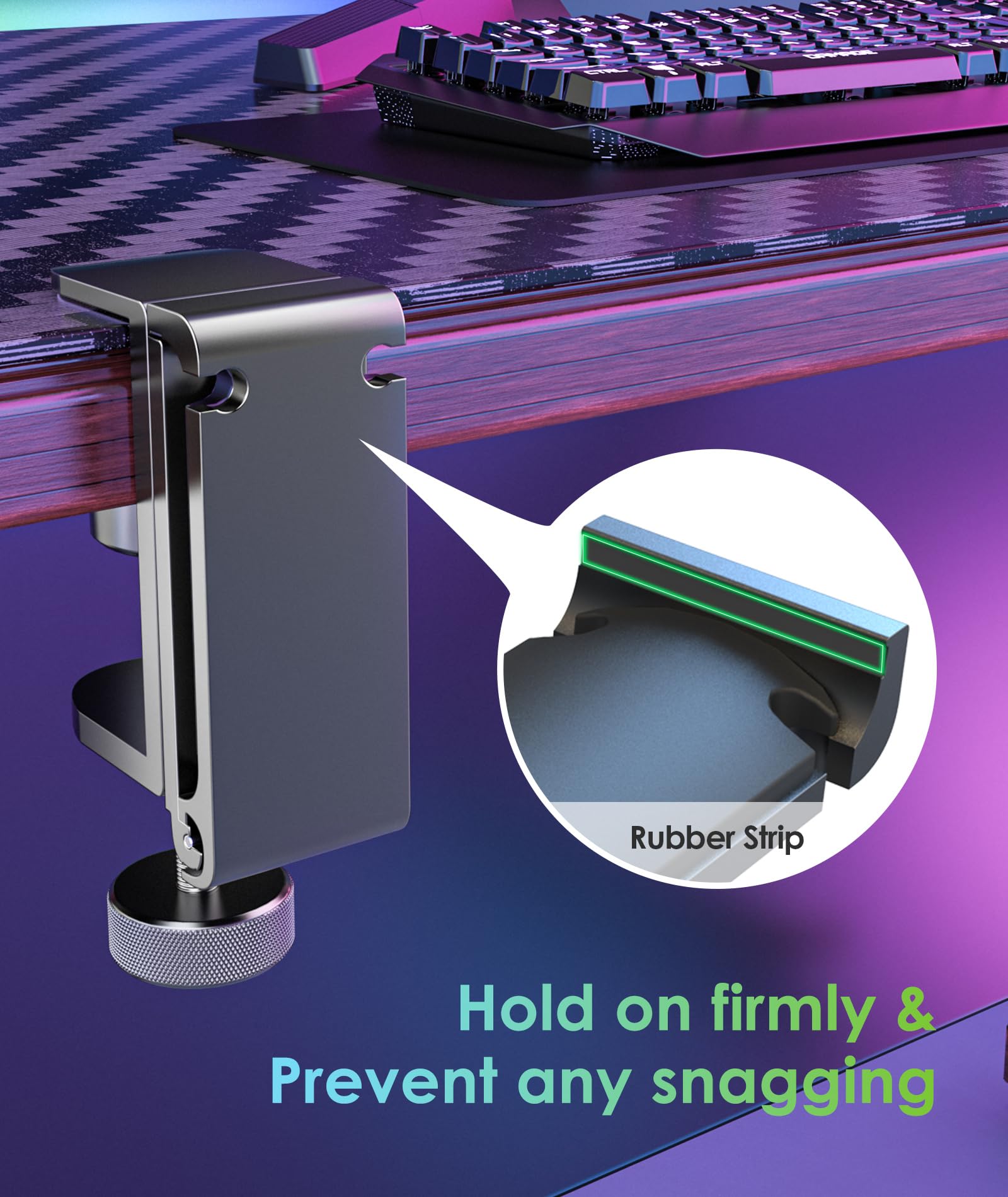 • Anti Scratch Design-Protection of Desk Surfaces: Rubber pads are attached on both clip’s ends, protecting your desk surface from scratches. The headset hanger is able to mount all desk within 50mm thickness. Also suit cabinets, shelfs, even glass flat surfaces