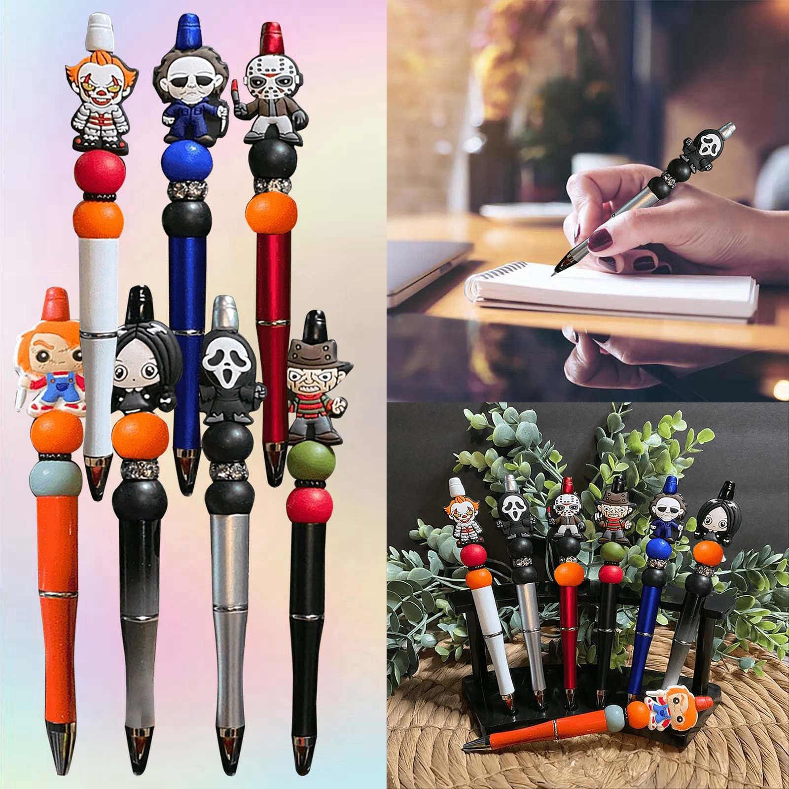 • 【High Quality Material】:Crafted from durable plastic, each Horror beadable pens is designed with a corresponding movie character, immersing you in the spirit of Halloween and the back-to-school season.Surprise your neighbors, deskmates, classmates, or even teachers with this wonderful gift.