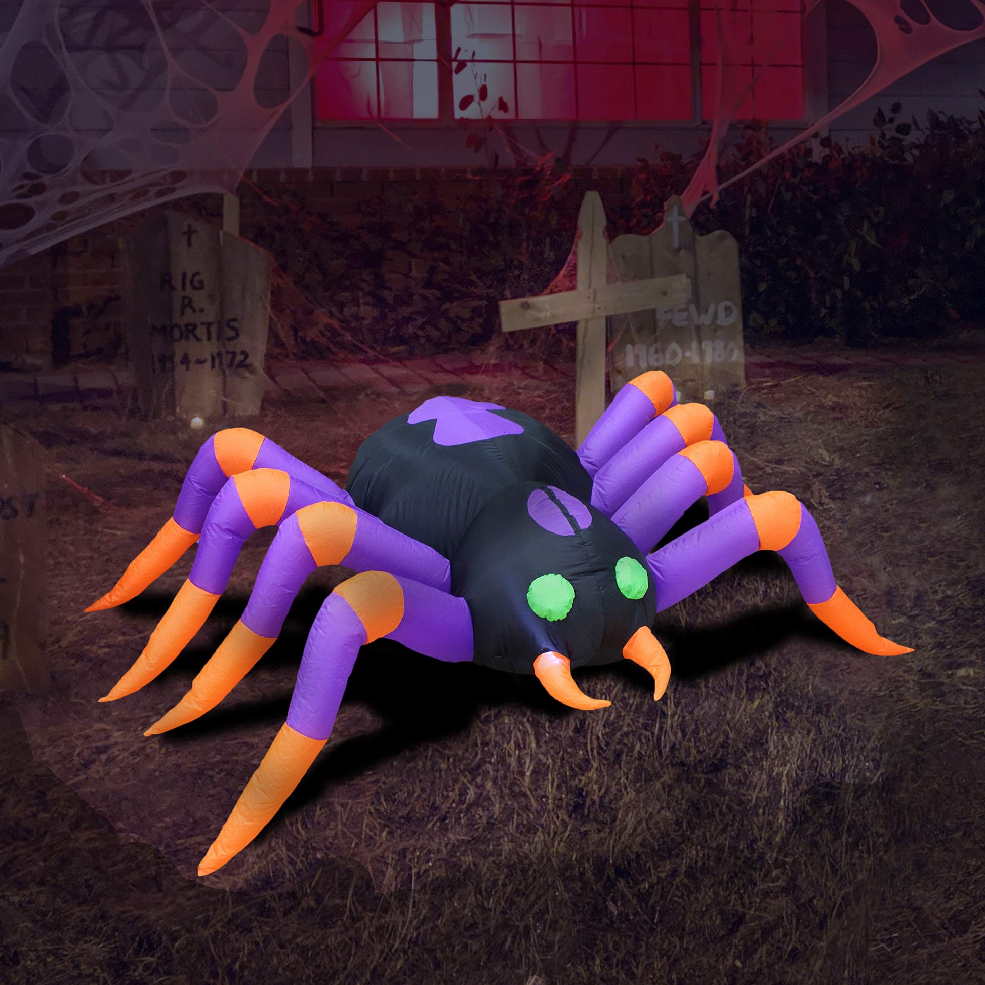8 Foot Long Halloween Inflatable Black Purple Spider LED Lights Decor Outdoor Indoor Holiday Decorations, Blow up Lighted Yard Decor, Giant Lawn Inflatables Home Family Outside