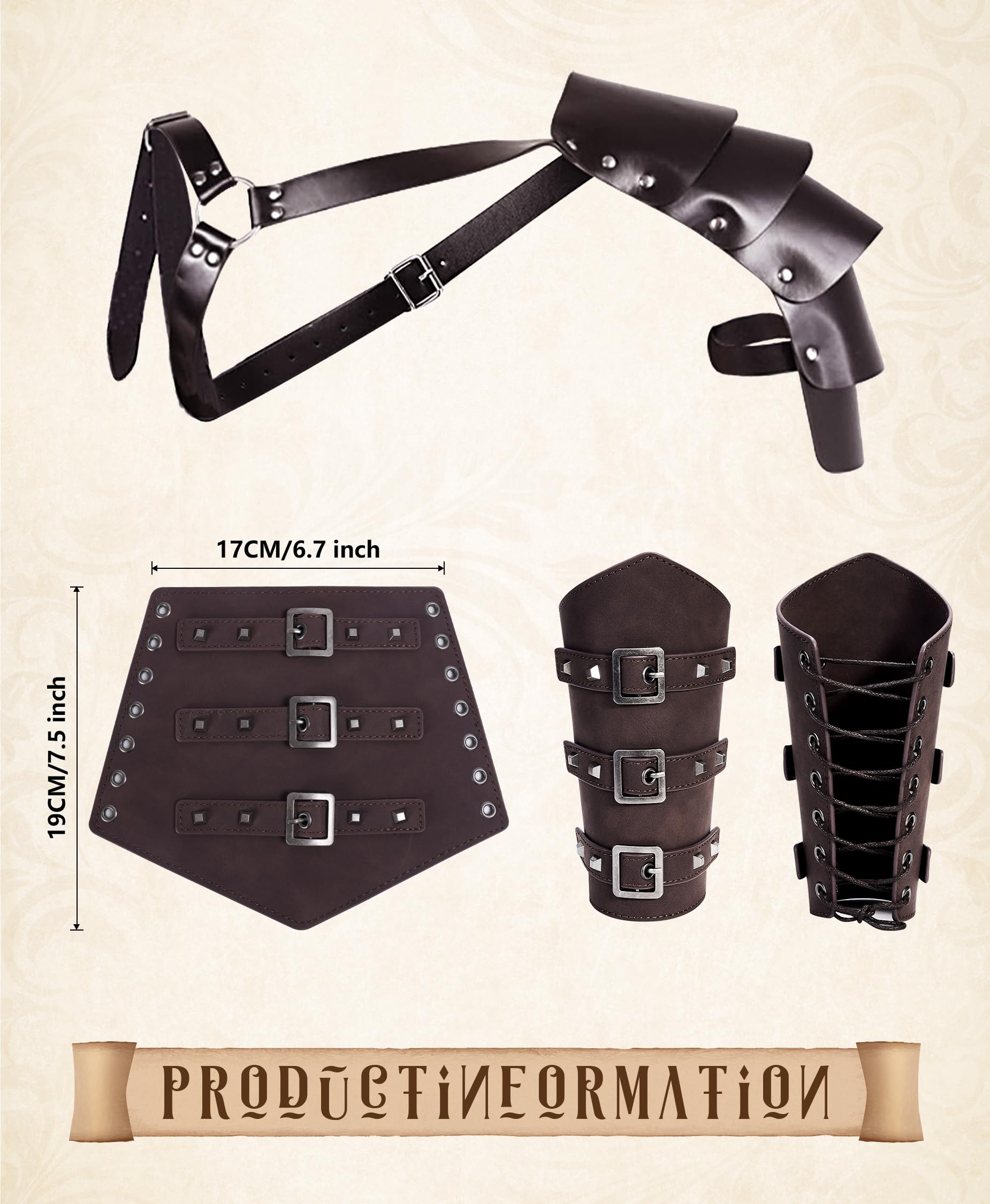 • Packing list: Renaissance costume includes: Shirt*1, Pant*1, Viking Belt*1, Bracer *2, Scabbard*1, Waist bag*1, Shoulder Armor*1