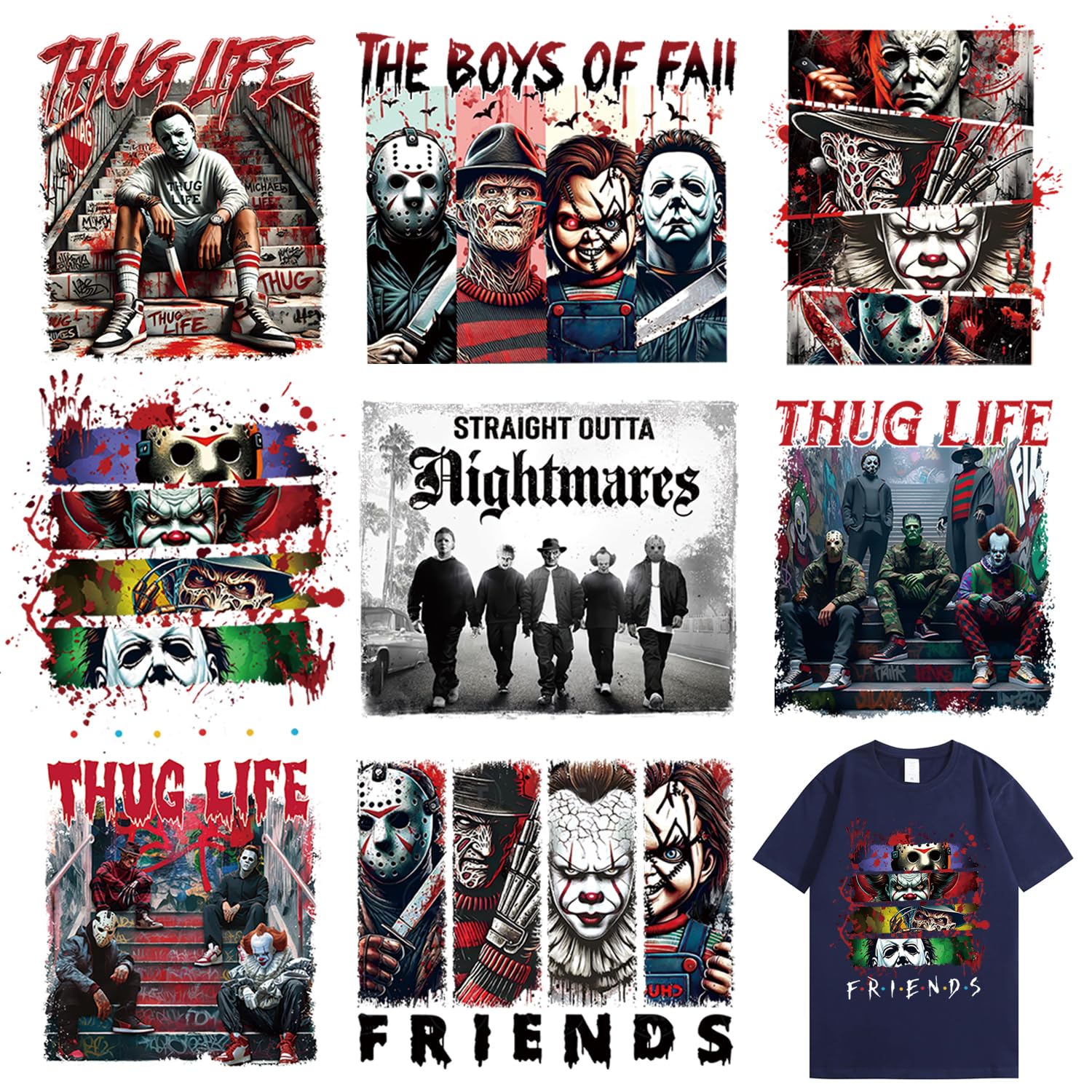 8 Sheets Halloween Iron on Transfers Patches for T-Shirt Iron on Decals Stickers Scary Movie Characters Design Heat Transfer Iron on Vinyl Appliques for Clothes Backpack DIY Craft Decor Supplies