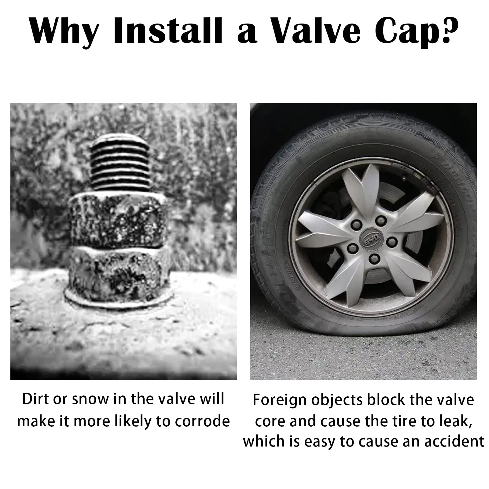 Double protection: Split tire valve caps feature illuminated plastic inlays and clear shell protection to effectively prevent valve stem corrosion. A good valve cover will prolong the life of the tire.