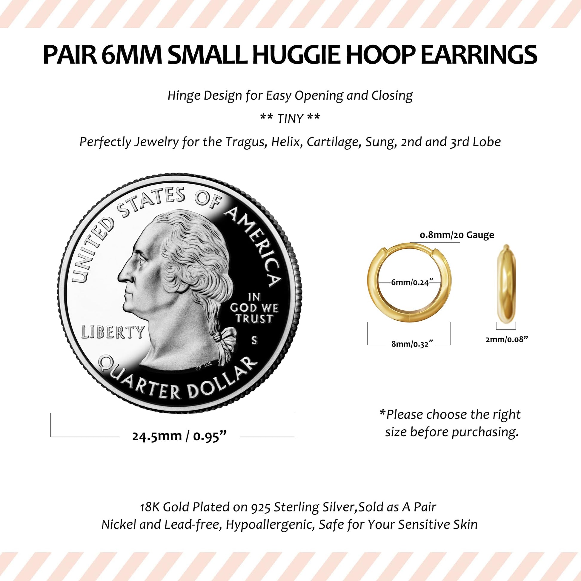 925 Sterling Silver Small Gold Hoop Earrings for Women Men,18K Gold Plated Hinge Huggie Hoop Earrings fit Cartilage, Helix, Tragus, Sung, Earlobe Lightweight Hypoallergenic Earrings (1 Pair - 6mm)